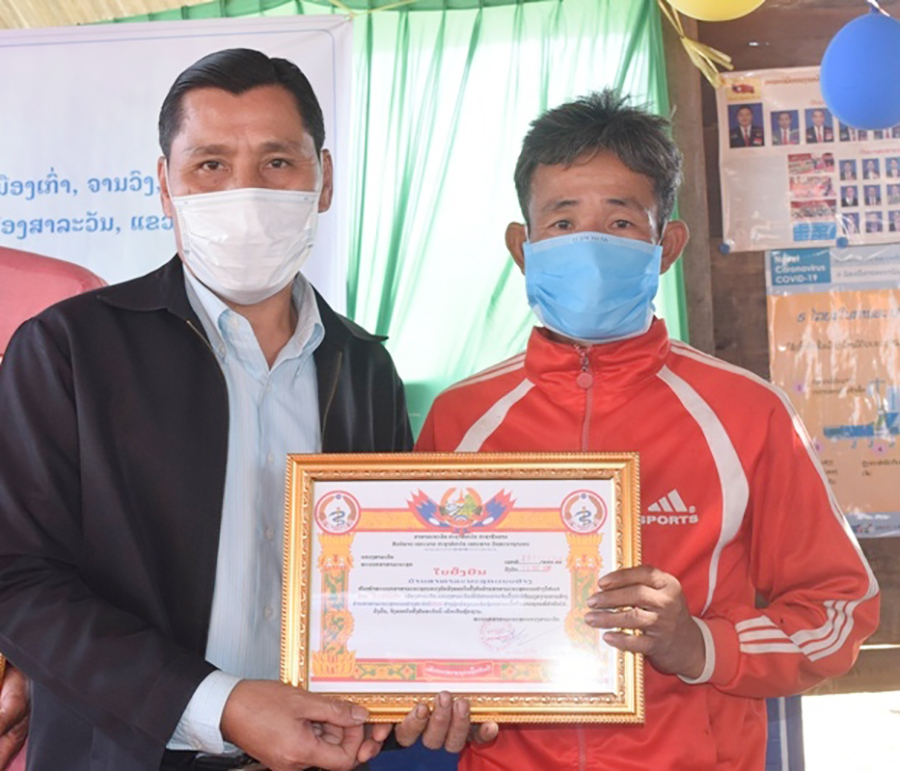 ຈາກນັ້ນທ່ານ ໜູຄຳ ສິງສະຫວັດ ຮອງເຈົ້າເມືອງສາລະວັນກໍ່ໄດ້ໃຫ້ກຽດຕັດແຖບຜ້າເປີດແຜ່ນປ້າຍ ແລະມອບໃບຢັ້ງຢືນບ້ານ, ໂອກາດດຽວກັນນັ້ນທ່ານ ຄຳຄ້າຍ ຄຳສິງສະຫວັດ ຮອງຫົວໜ້າພະແນກສາທາລະນະສຸກແຂວງກໍ່ໄດ້ໃຫ້ກຽດຂຶ້ນມອບໃບຢັ້ງຢືນບ້ານສາທາລະນະສຸກແບບຢ່າງດ້ານ.