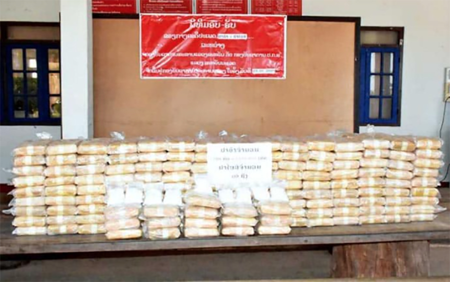 ພັອ ສົມໝາຍ ພົມມະຈັນ ຫົວໜ້າກອງບັນຊາການ ປກສ ແຂວງສະຫວັນນະເຂດ ໃຫ້ຮູ້ ວ່າ: ໃນວັນທີ 25 ມັງກອນ 2021, ໃນເວລາ 8:00 ໂມງ ທະຫານຊາຍແດນ 324 ກອງ ບັນຊາການທະຫານ ແຂວງສະຫວັນນະເຂດ ໄດ້ອອກກວດກາລາດຕະເວນປະຕິບັດໜ້າທີ່ໃນຂອບເຂດຄວາມຮັບຜິດຊອບ, ເຊິ່ງໃນຂະນະລາດ ຕະເວນຮອດຂອບເຂດບ້ານຫ້ວຍໄຜ່ ນະຄອນໄກສອນພົມວິຫານພົບເຫັນກະເປົາສີຂາວຈໍານວນ 7 ເປົາ ຊຸກເຊື່ອງໄວ້ໃນກ້ອງກົກໄຄ້ ຫ່າງຈາກແຄມນໍ້າຂອງປະມານ 5 ແມັດ. ຜ່ານການກວດກາພົບເຫັນຢາບ້າຈໍານວນ 788 ມັດ ເທົ່າກັບ 1. 576.000 ເມັດ ແລະຢາໄອສ໌ຈໍານວນ 9 ຖົງ ນ້ອຍ, ຈຶ່ງໄດ້ນໍາເອົາຢາເສບຕິດຈໍານວນດັ່ງກ່າວມາທີ່ກອງບັນຊາການທະຫານແຂວງພ້ອມທັງປະສານຫາພາກສ່ວນກ່ຽວຂ້ອງມາກວດກາສະຖານທີ່ດັ່ງກ່າວ.