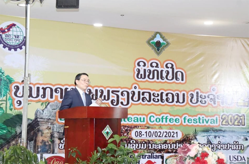 ງານບຸນກາເຟພູພຽງບໍລະເວນປະຈໍາປີ 2021 ໄດ້ຈັດຂຶ້ນຢູ່ສູນການຄ້າເຟຣັນຊິບມໍນະຄອນປາກເຊແຂວງຈໍາປາສັກໃນວັນທີ 8 ກຸມພາ 2021,ໂດຍການໃຫ້ກຽດເຂົ້າ ຮ່ວມຂອງທ່ານ ປອ ວິໄລວົງ ບຸດດາຄໍາ ເຈົ້າແຂວງໆຈໍາປາສັກ, ທ່ານນາງ ເຂັມມະນີ ພົນເສນາລັດ ຖະມົນຕີກະຊວງ ອຸດສາຫະກໍາ-ການຄ້າ,ທ່ານ ປອ ເພັດ ພົມພິທັກ ລັດຖະມົນຕີກະຊວງກະສິກໍາ-ປ່າໄມ້, ບັນດາທ່ານຕາງໜ້າອົງການຈັດຕັ້ງສາກົນ, ການນໍາພາຍໃນແຂວງຕ່າງແຂວງ,ພະແນກອຸດສາຫະກໍາ-ການຄ້າ,ສະມາຄົມກາເຟລາວຕະຫຼອດຮອດຜູ້ປະກອບການ ແລະຫົວໜ່ວຍທຸລະກິດຕ່າງໆພາຍໃນແຂວງ ແລະຕ່າງແຂວງເຂົ້າຮ່ວມ.
