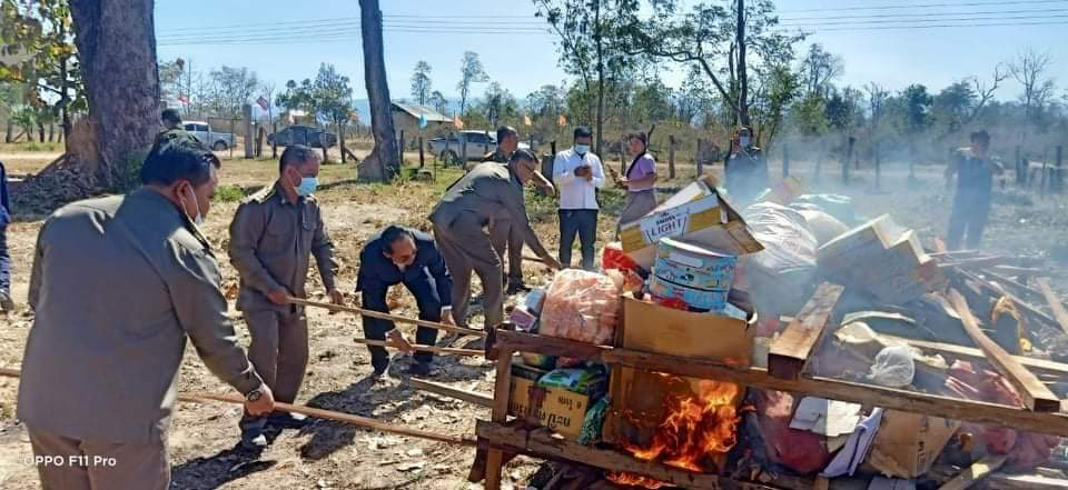 ເມືອງພູວົງ ແຂວງອັດຕະປື ໄດ້ຈູດທຳລາຍສິນຄ້ານອກລະບົບ, ສິນຄ້າເສື່ອມຄຸນນະພາບ ແລະສິນຄ້າໝົດອາຍຸຫຼາຍລາຍການ, ລວມມູນຄ່າ 39 ລ້ານກວ່າກີບ.