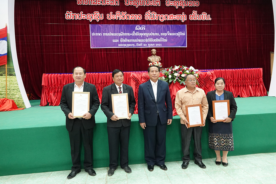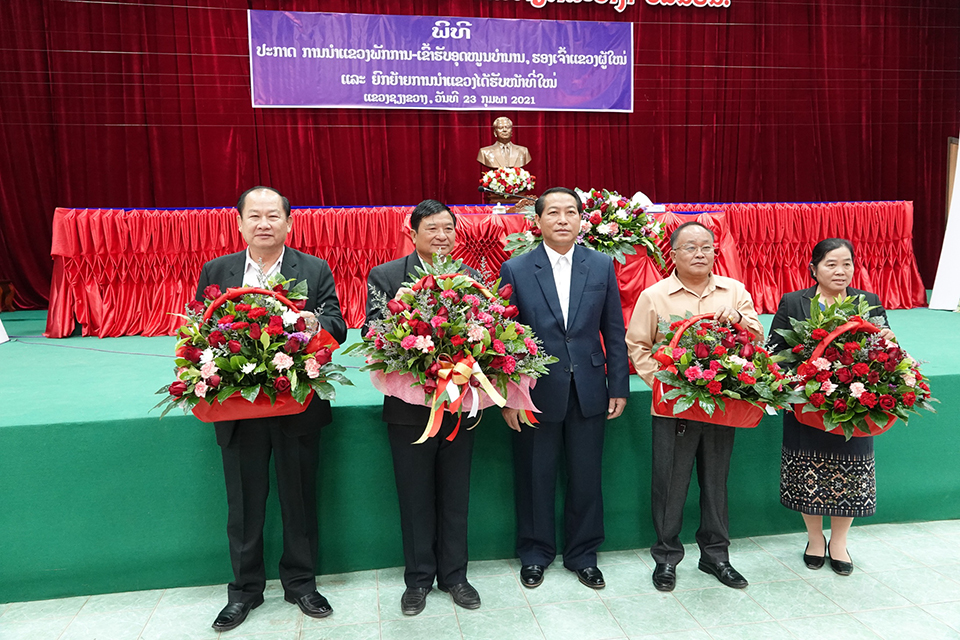 ພິທີປະກາດການນຳພັກການ-ເຂົ້າຮັບອຸດໜູນບຳນານ ແລະຍົກຍ້າຍຮັບໜ້າທີ່ໃໝ່ຈັດຂຶ້ນໃນວັນທີ 23 ກຸມພາ 2021 ທີ່ຫ້ອງວ່າການແຂວງຊຽງຂວາງໂດຍການເປັນປະທານຂອງທ່ານ ບຸນຈັນ ສີວົງພັນ ເຈົ້າແຂວງໆຊຽງຂວາງ, ມີຫົວໜ້າ, ຮອງຫົວໜ້າພະແນກການ, ກອງບັນຊາການ, ອົງການເຂົ້າຮ່ວມ.
