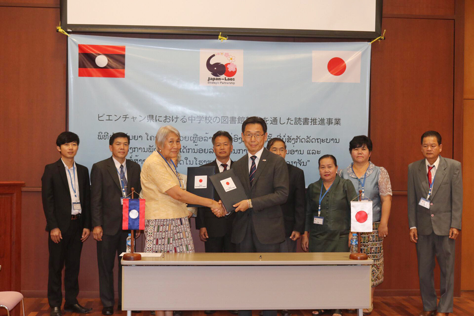 ລັດຖະບານຍີ່ປຸ່ນໄດ້ໃຫ້ການຊ່ວຍເຫຼືອລ້າເພື່ອສະໜັບສະໜູນພັດທະນາດ້ານການສຶກສາ 2 ໂຄງການໃນລາວເຊັ່ນ: ໂຄງການຝຶກອົບຮົມວິຊາຊີບ ແລະໂຄງ ການກໍ່ສ້າງຫ້ອງສະໝຸດໂຮງຮຽນ,ການສົ່ງເສີມການສຶກສາຜ່ານການອ່ານ.
