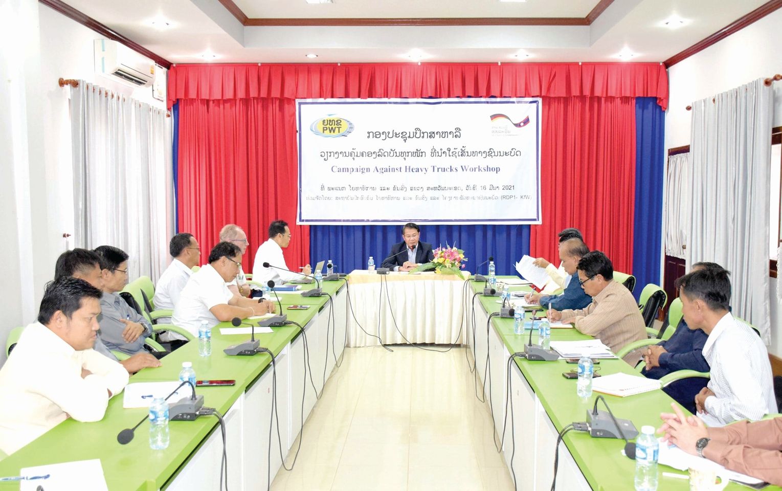ກອງປະຊຸມປຶກສາຫາລືວຽກງານຄຸ້ມຄອງລົດບັນທຸກໜັກທີ່ນຳໃຊ້ເສັ້ນທາງຊົນນະບົດໄດ້ຈັດຂຶ້ນໃນວັນທີ 16 ມີນາ 2021 ທີ່ຫ້ອງປະຊຸມພະແນກໂຍທາທິການ ແລະຂົນສົ່ງ (ຍທຂ) ແຂວງສະຫວັນນະເຂດທີ່ຈັດໂດຍສະຖາບັນຝຶກອົບຮົມໂຍທາທິການ ແລະຂົນສົ່ງ ແລະໂຄງການພັດທະນາຊົນນະບົດ (RDP1-KFW) ພາຍໃຕ້ການເປັນປະທານກອງປະຊຸມຂອງ ທ່ານ ປະສົງສິນ ຈະເລີນສຸກ ກຳມະການປະຈຳພັກແຂວງເຈົ້ານະຄອນໄກສອນ ພົມວິຫານ, ມີທ່ານ ວິລັດ ເລີດນິຍົມ ຮອງຫົວໜ້າພະ ແນກ ຍທຂ ແຂວງ, ຮອງເຈົ້າເມືອງນອງ, ຮອງເຈົ້າເມືອງເຊໂປນ, ຫ້ອງການ ຍທຂ ເມືອງເຊໂປນ ແລະ ເມືອງນອງ, ພະນັກງານວິຊາການຈາກຫ້ອງການຂົວທາງ ແລະຫ້ອງການຂົນສົ່ງແຂວງພ້ອມທັງທີ່ປຶກສາໂຄງການເຂົ້າຮ່ວມ.