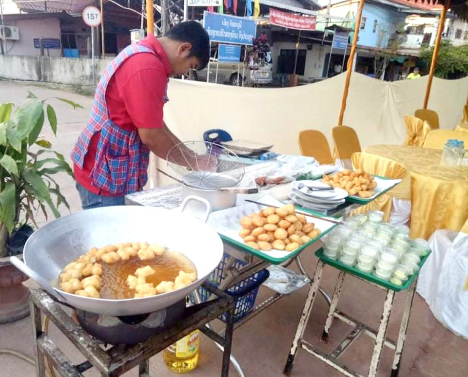 ນາງ ເມ ເຈົ້າຂອງຮ້ານເຂົ້າໜົມອື່ງໃຫ້ສຳພາດຮູ້ວ່າ: ຮ້ານເຂົ້າໜົມ ນາງ ເມອື່ງ ແລະຄູ່ນ້ອຍຖືວ່າເປັນການເປີດບໍລິການເຮັດຂາຍມາແຕ່ປີ 1980 ສະໄໝຜູ້ເປັນແມ່ ແລະຕົນເອງກໍ່ໄດ້ມາສືບຕໍ່ເຮັດຂາຍຈົນມາຮອດປະຈຸບັນໂດຍທາງຮ້ານແມ່ນມີບໍລິການຂາຍເຂົ້າໜົມທຸກຢ່າງມີເຂົ້າໜົມຄູ່, ເຂົ້າໜົມອື່ງ ແລະເຂົ້າໜົມປະຕິໂຊ້ໃສ້ໝູ່ ແລະອື່ນໆ ໂດຍຈະຂາຍກ້ອນລະ 1000 ພັນກີບ ເຄື່ອງທີ່ນຳມາບໍລິການເຮັດອາຫານກໍ່ຊອກຊື້ຕາມຕະຫຼາດບ້ານເຮົາ.