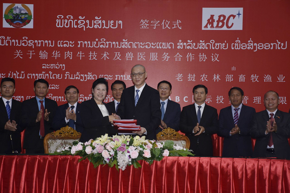ວັນທີ 31 ມີນາ 2021 ທີ່ນະຄອນຫຼວງວຽງຈັນ ກົມລ້ຽງສັດ ແລະປະມົງ, ກະຊວງກະສິກໍາ ແລະປ່າໄມ້ ແລະບໍລິສັດ ເອຊີບີ ທີ່ປຶກສາບໍລິຫານການລົງທຶນໄດ້ຈັດພິທີເຊັນສັນຍາວ່າດ້ວຍການຮ່ວມມືດ້ານວິຊາການ ແລະການບໍລິການດ້ານສັດຕະວະແພດສໍາລັບສັດໃຫຍ່ເພື່ອສົ່ງອອກໄປ ສປ ຈີນ ເປັນກຽດລົງນາມໂດຍ ທ່ານ ນາງ ວິໄລພອນ ວໍລະພິມ ຫົວໜ້າກົມລ້ຽງສັດ ແລະປະມົງ, ກະຊວງກະສິກໍາ ແລະປ່າໄມ້ ແລະທ່ານ ຊາງເຊັງ ປະທານບໍລິສັດ ເອຊີບີ ທີ່ປຶກສາບໍລິຫານການລົງທຶນ, ໂດຍເປັນກຽດການເຂົ້າຮ່ວມຂອງທ່ານ ເພັດ ພົມພິພັກ ລັດຖະມົນຕີກະຊວງກະສິກໍາ ແລະປ່າໄມ້, ບັນດາຮອງລັດຖະມົນຕີ, ຮອງເຈົ້າແຂວງ, ເຈົ້າເມືອງພ້ອມດ້ວຍພາກສ່ວນທີ່ກ່ຽວຂ້ອງເຂົ້າຮ່ວມເປັນສັກຂິພິຍານ.