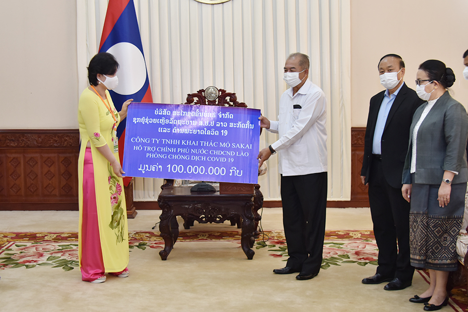 ໂຫຍດສູງສຸດໂດຍສະເໜີໃຫ້ບັນດາພາກສ່ວນທີ່ໄດ້ມອບການຊ່ວຍເຫຼືອໃນຄັ້ງນີ້ຈົ່ງພ້ອມກັນຕິດຕາມ ແລະ ຊຸກຍູ້-ສົ່ງຂ່າວ ການນຳໃຊ້ເຄື່ອງ ແລະ ເງິນດັ່ງກ່າວໃຫ້ມີຄວາມໂປ່ງໃສ, ໄປຮອດໄປເຖິງເປົ້າໝາຍ,ສອດຄ່ອງກັບເນື້ອໃນຈິດໃຈຂອງການຊ່ວຍເຫຼືອຢ່າງແທ້ຈິງ. ໃນໂອກາດດຽວກັນ,ທ່ານຮອງນາຍົກລັດຖະມົນຕີຍັງໄດ້ຮຽກຮ້ອງມາຍັງທຸກພາກສ່ວນໃນສັງຄົມເພີ່ມທະວີຄວາມເປັນຈິດໜຶ່ງໃຈດຽວກັນຮ່ວມກັບລັດຖະບານເປັນເຈົ້າການປະຕິບັດບັນດາມາດຕະການປ້ອງກັນ, ສະກັດກັ້ນ, ຄວບຄຸມ ແລະແກ້ໄຂການແຜ່ລະບາດຂອງພະຍາດໂຄວິດ-19 ຢ່າງເຂັ້ມງວດປະກອບສ່ວນເຮັດໃຫ້ການປະຕິບັດພາລະກິດຕ້ານພະຍາດໂຄວິດ-19 ຄັ້ງນີ້ ໄດ້ຮັບຜົນສຳເລັດຢ່າງຈົບງາມເວົ້າລວມ,ເວົ້າສະເພາະແມ່ນສະເໜີໃຫ້ບັນດາພາກສ່ວນທີ່ເຂົ້າມອບການຊ່ວຍເຫຼືອຈົ່ງຊ່ວຍປຸກລະດົມ, ອະທິບາຍຊີ້ແຈງໃຫ້ພະນັກງານທີ່ຢູ່ໃນຄວາມຮັບຜິດຊອບຂອງຕົນໄດ້ຮັບຮູ້ ແລະ ເຂົ້າໃຈເຖິງຄວາມອັນຕະລາຍຂອງເຊື້ອພະຍາດໂຄວິດ-19, ລວມທັງເຫດຜົນ ແລະຄວາມຈຳເປັນທີ່ລັດຖະບານຕ້ອງວາງນະໂຍບາຍຕ່າງໆ