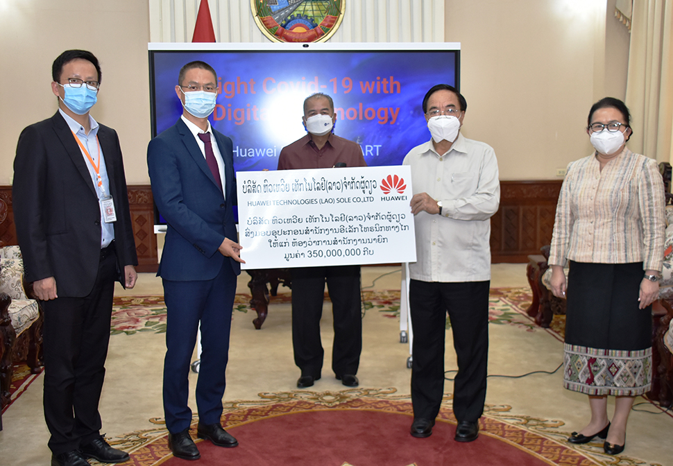 ໃນວັນທີ 7 ພຶດສະພາ 2021 ທີ່ຫ້ອງວ່າການສຳນັກງານນາຍົກລັດຖະມົນຕີ (ຫສນຍ),ບໍລິສັດຫົວເຫວີຍ ເຕັກໂນໂລຢີ (ລາວ) ຈໍາກັດຜູ້ດຽວ ໄດ້ສະໜັບສະໜູນອຸປະກອນສໍານັກງານເເລັກໂທຣນິກ ມູນຄ່າ 350.000.000 ກີບ ໃຫ້ແກ່ລັດຖະບານ. ຊຶ່ງຕາງໜ້າມອບໂດຍ ທ່ານ ຫູ ເຫວີຍຫົວ, ປະທານບໍລິສັດຫົວເຫວີຍ ປະຈຳລາວ.