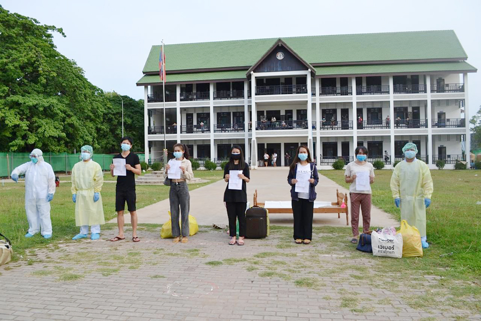ທີ່ສູນປິ່ນປົວຄົນຕິດເຊື້ອພະຍາດໂຄວິດ-19 (ວິທະຍາໄລວິທະຍາສາດສຸຂະພາບ) ຂອງແຂວງສະຫວັນນະເຂດ ໄດ້ຈັດພິທີສົ່ງຜູ້ປ່ວຍທີ່ໄດ້ຮັບການປິ່ນປົວດີຈາກພະຍາດໂຄວິດ-19 (ຜົນກວດເປັນລົບ) ໃຫ້ກັບຄືນໄປກັກຕົວຕໍ່ຢູ່ບ້ານເຮືອນຂອງໃຜລາວເປັນໄລຍະເວລາ 14 ວັນ ເພື່ອຕິດຕາມອາການກ່ອນຈະໃຊ້ຊີວິດແບບປົກກະຕິ.