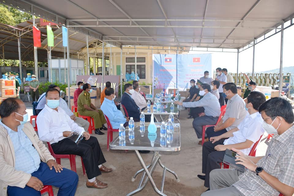 ພິທີມອບ-ຮັບໄດ້ຈັດຂຶ້ນທີ່ດ່ານຊາຍແດນສາກົນລະໄລເມືອງສະໝ້ວຍ, ມອບໂດຍທ່ານ ຮວ່າງນາມ ຮອງປະທານຄະນະກຳມະການປະຊາຊົນ ແຂວງກວາງຈີ, ຮັບໂດຍທ່ານ ສົມໃຈ ອຸນຈິດ ຮອງເຈົ້າ ແຂວງໆສາລະວັນ ຫົວໜ້າຄະນະສະເພາະກິດໂຄວິດ-19 ແຂວງສາລະວັນພ້ອມດ້ວຍຄະນະເຂົ້າຮ່ວມເປັນສັກຂີພິຍານ.