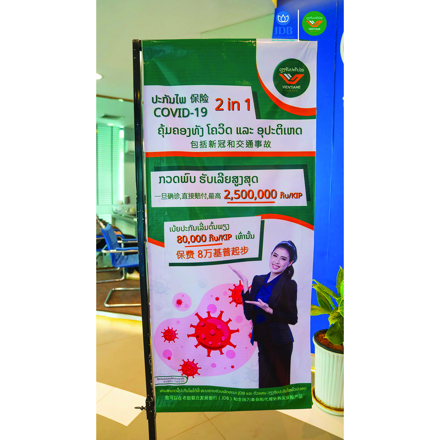 ວັນທີ 16 ມິຖຸນາ 2021 ທີ່ສຳນັກງານໃຫຍ່ທະນາຄານຮ່ວມພັດທະນາ (JDB) ໄດ້ມີພິທີເປີດການຂາຍພະລິດຕະພັນໃໝ່ຄື: ປະກັນໄພ ໂຄວິດ-19 2IN 1 ເປັນກຽດເຂົ້າຮ່ວມໃນພິທີຄັ້ງນີ້ມີທ່ານ ຄໍາຊູ ຢ່າງ ຮອງຜູ້ອໍານວຍການໃຫຍ່ທະນາຄານຮ່ວມພັດທະນາພ້ອມດ້ວຍຄະນະ, ຝ່າຍບໍລິສັດວຽງຈັນປະກັນໄພແມ່ນນໍາໂດຍ ທ່ານ ສຸລິຍາ ພົວສີສຸວັນ ຫົວໜ້າພະແນກການຕະຫຼາດບໍລິສັດວຽງຈັນ ປະກັນໄພ ພ້ອມດ້ວຍທີມງານກໍ່ໄດ້ເຂົ້າຮ່ວມ.