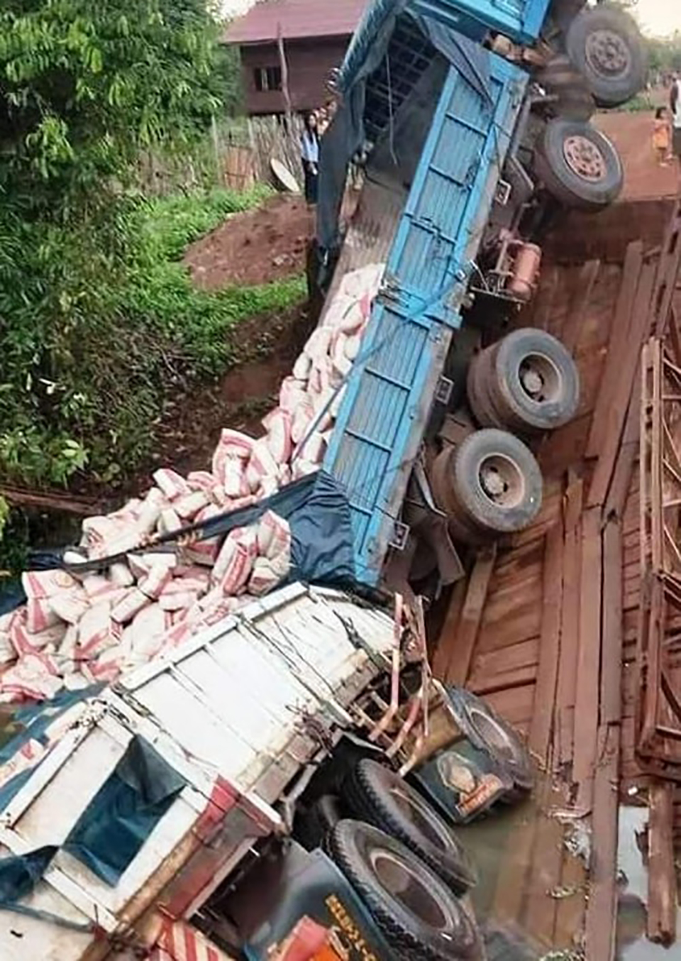 ຂົວຂ້າມຫ້ວຍບ້ານເສັດນໍ້າອ້ອມ ເມືອງໂຂງ ແຂວງຈຳປາສັກ ມີອາຍຸການນຳໃຊ້ 10 ກວ່າປີ ແຕ່ມາເຖິງວັນທີ 25 ພຶດສະພາ 2021 ທີ່ຜ່ານມາຂົວດັ່ງກ່າວກໍ່ໄດ້ຫັກລົງຍ້ອນລົດບັກທຸກແກ່ວັດສະດຸກໍ່ສ້າງທີ່ມີນໍ້າໜັກເກີນເຂົ້າຢຽບເປັນເຫດໃຫ້ຂົວດັ່ງກ່າວຫັກ ແລະສ້າງຄວາມຫຍຸ້ງຍາກແກ່ຜູ້ສັນຈອນໄປມາ.