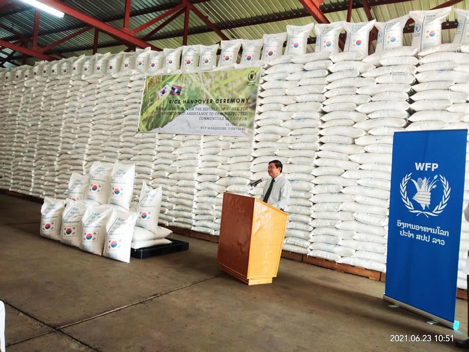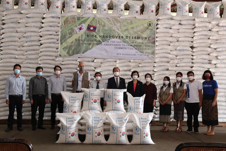 ວັນທີ 23 ມິຖຸນາ 2021 ທີ່ນະຄອນຫຼວງວຽງຈັນ, ລັດຖະບານແຫ່ງສາທາລະນະລັດ ເກົາຫຼີ ໄດ້ນຳເອົາເຂົ້າສານຈ້າວ ຈຳນວນ 1.320 ໂຕນ ມູນຄ່າປະມານ 1,26 ລ້ານໂດລາສະຫະລັດ ມອບໃຫ້ແກ່ລັດຖະບານລາວເພື່ອຊ່ວຍເຫຼືອຊຸມຊົນຜູ້ທີ່ໄດ້ຮັບຜົນກະທົບຈາກໄພພິບັດທໍາມະຊາດທີ່ເກີດຂຶ້ນ ໃນ ສປປ ລາວ, ໂດຍຜ່ານອົງການອາຫານໂລກ.