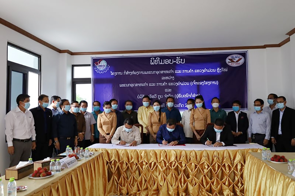 ພິທີມອບ-ຮັບໂຄງການກໍ່ສ້າງຫ້ອງການພະແນກອຸດສາຫະກໍາ ແລະການຄ້າແຂວງຄໍາມ່ວນ ( ຫລັງໃໝ່ ) ໄດ້ຈັດຂຶ້ນໃນວັນທີ 7 ກໍລະກົດ 2021 ລະຫວ່າງພະແນກອຸດສາຫະກຳ ແລະການຄ້າແຂວງ (ເຈົ້າຂອງໂຄງການ) ແລະບໍລິສັດ ເອັສວີກຣຸບ ຈຳກັດ ( ຜູ້ຮັບເໝົາກໍ່ສ້າງ ) ເປັນກຽດເຂົ້າຮ່ວມເປັນສັກຂີພິຍານໂດຍທ່ານ ບຸນມີ ພິມມະສອນ ປະທານສະພາປະຊາຊົນແຂວງ, ມີບັນດາພະແນກການ, ຂະແໜງການ, ແຂກຖືກເຊີນ ແລະພະນັກງານວິຊາການທີ່ກ່ຽວຂ້ອງເຂົ້າຮ່ວມ.