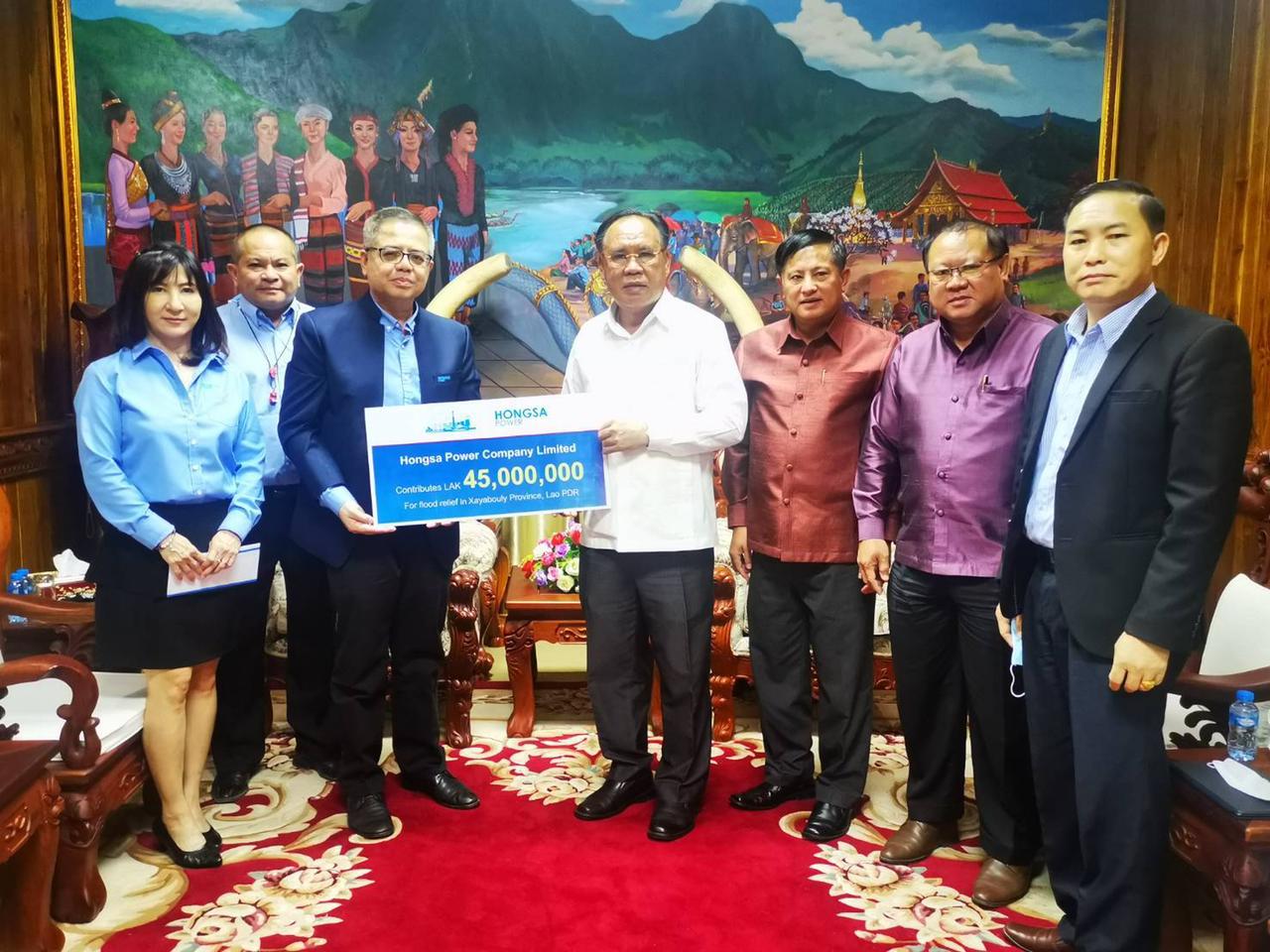 ເພື່ອເປັນການປະກອບສ່ວຍຊ່ວຍເຫຼືອສຸກເສີນ ແລະຕອບໂຕ້ໄພພິບັດນໍ້າຖ້ວມແຂວງໄຊຍະບູລີ ໃນກາງເດືອນມິຖຸນາ ທີ່ຜ່ານມາ, ບໍລິສັດ ໄຟຟ້າ ຫົງສາຈໍາກັດ ກໍ່ໄດ້ໃຫ້ການຊ່ວຍເຫຼືອໃນການຕອບໂຕ້ສຸກເສີນ ແລະ ຮັບມືກັບໄພນໍ້າຖ້ວມແຂວງໄຊຍະບູລີໂດຍສະເພາະແມ່ນໄດ້ສົ່ງທີມງານ ແລະ ພາຫະນະເປັນລົດສະແຕັກນໍ້າ, ເຂົ້າສານ, ອາຫານແຫ້ງ, ນໍ້າດື່ມ ແລະເງິດສົດ 30 ລ້ານກີບ ລວມມູນຄ່າທັງໝົດ 45 ລ້ານກີບ, ການຊ່ວຍເຫຼືອມື້ນໍ້າຖ້ວມ ທາງບໍລິສັດແມ່ນໄດ້ແຈກຍາຍນໍ້າດື່ມ ແລະອາຫານແຫ້ງ, ຫຼັງນໍ້າຖ້ວມແມ່ນໄດ້ນໍາລົດສະແຕັກນໍ້າເຂົ້າຊ່ວຍລ້າງທາງ, ລ້າງເຮືອນປະຊາຊົນ ແລະໂຮງຮຽນໃຫ້ມີຄວາມສະອາດ, ພິທີມອບ-ຮັບການຊ່ວຍເຫຼືອໄດ້ຈັດຂຶ້ນໃນວັນທີ 14 ກໍລະກົດ 2021 ທີ່ຫ້ອງຮັບຮອງຫ້ອງວ່າການແຂວງ, ມອບໂດຍແມ່ນທ່ານ ຄະທາຍຸດ ຊູພູນ ຜູ້ອໍານວຍການໃຫຍ່ບໍລິສັດ ໄຟຟ້າຫົງສາ ຈໍາກັດພ້ອມຄະນະ ແລະຮັບໂດຍ ທ່ານ ພົງສະຫວັນ ສິດທະວົງ ເຈົ້າແຂວງໄຊຍະບູລີ, ໂອກາດດັ່ງກ່າວທ່ານເຈົ້າແຂວງກໍ່ໄດ້ສະແດງຄວາມຂອບໃຈມາຍັງບໍລິສັດ ໄຟຟ້າຫົງສາ ຈໍາກັດ ທີ່ໄດ້ມອບເງິນ, ເຄື່ອງກິນ-ດື່ມ ແລະໃຫ້ການຊ່ວຍເຫຼືອໃນມື້ນໍ້າຖ້ວມ ແລະຫຼັງນໍ້າຖ້ວມເປັນຕົ້ນແມ່ນໄດ້ແຈກຍາຍນໍ້າດື່ມ, ອາຫານ ແລະຊ່ວຍໃນການລ້າງຫົນທາງ, ເຮືອນປະຊາຊົນ ແລະ ໂຮງຮຽນໃຫ້ກັບມາສູ່ສະພາບປົກກະຕິ.
