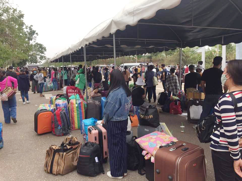 ຕໍ່ບັນຫາດັ່ງກ່າວ; ລັດຖະບານເຮົາໄດ້ວິເຄາະ-ວິໄຈ ແລະຕີລາຄາບັນຫາການແຜ່ລະບາດພະຍາດໂຄວິດ-19 ຢູ່ໃນໂລກກໍ່ຄືບາງປະເທດໃກ້ຄຽງຍັງສືບຕໍ່ຂະຫຍາຍວົງກ້ວາງ;ສະນັ້ນ,ໃນທ້າຍເດືອນເມສາ 2021 ກະຊວງປ້ອງກັນຄວາມສະຫງົບໄດ້ອອກແຈ້ງການເຖິງບັນດາດ່ານຕໍາຫຼວດກວດຄົນເຂົ້າ-ອອກ ເມືອງສາກົນທີ່ມີຊາຍແດນຕິດກັບປະເທດໄທຮັບເອົາພົນລະເມືອງລາວ ຫຼືແຮງງານລາວທີ່ຕົກຄ້າງຢູ່ໄທກັບຄືນປະເທດໂດຍແຮງງານລາວ ຫຼືພົນລະເມືອງລາວທີ່ມີເອກະສານເດີນທາງຖືກຕ້ອງ, ຄົບຖ້ວນໃຫ້ຖືເອົາກົນໄກການປະສານສົມທົບກັບດ່ານເຊິ່ງໜ້າເພື່ອຮັບເອົາເຂົາເຈົ້າກັບຄືນ ສປປ ລາວ; ການຮັບເອົາແຮງງານລາວ ຫຼືພົນລະເມືອງລາວທີ່ເດີນທາງໄປໄທແບບບໍ່ຖືກຕ້ອງໃຫ້ສຶກສາອົບຮົມ, ກ່າວເຕືອນ ແລະຫ້າມບໍ່ໃຫ້ມີປັບໄໝ... ແລ້ວສັງລວມຂໍ້ມູນປະສານຫາພາກສ່ວນກ່ຽວຂ້ອງພິສູດວ່າເປັນພົນລະເມືອງລາວແທ້ບໍ? ກ່ອນຈະອະນຸຍາດໃຫ້ເດີນທາງເຂົ້າ ສປປ ລາວ; ການຮັບເອົາພົນລະເມືອງລາວ ຫຼືແຮງງານລາວທຸກຄັ້ງຕ້ອງຮີບຮ້ອນປະສານສົມທົບກັບຄະນະສະເພາະກິດທ້ອງຖິ່ນນັ້ນເພື່ອພາຕົວພວກກ່ຽວໄປກວດຫາເຊື້ອໂຄວິດ-19 ແລະໄປຈໍາກັດບໍລິເວນຕາມສະຖານທີ່ທີ່ກໍານົດໄວ້.
