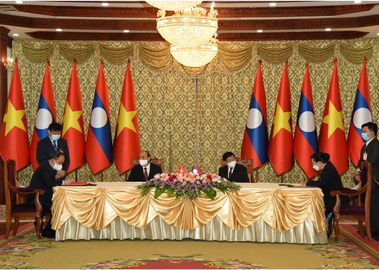 ພາຍຫຼັງສຳເລັດການພົບປະທາງການສອງຝ່າຍ, ທ່ານປະທານປະເທດທັງສອງໄດ້ເປັນກຽດເຂົ້າຮ່ວມເປັນສັກຂີພິຍານໃນການລົງນາມເອກະສານກ່ຽວກັບການຮ່ວມມືສອງຝ່າຍ ຈໍານວນ 14 ສະບັບ ໃນນີ້, ມີ 7 ເອກະສານຂອງພາກລັດ ຄື: ບົດບັນທຶກວ່າດ້ວຍໂຄງການກໍ່ສ້າງໂຮງຮຽນວັດທະນະທຳຊົນເຜົ່າກອງທັບ; ໜັງສືເຈດຈໍານົງວ່າ ດ້ວຍການຮ່ວມມືກອບ-ກູ້ໄພລະຫວ່າງ ສອງກະຊວງປ້ອງກັນປະເທດລາວ ແລະຫວຽດນາມ; ບົດບັນທຶກເພີ່ມເຕີມແຜນການຮ່ວມມື ປະຈໍາປີ 2020 ລະຫວ່າງກະຊວງປ້ອງກັນຄວາມສະຫງົບ ແຫ່ງ ສປປ ລາວ ແລະກະຊວງ ປ້ອງກັນຄວາມສະຫງົບແຫ່ງ ສສ ຫວຽດນາມ; ບົດບັນທຶກການຮ່ວມມືລະຫວ່າງຫ້ອງວ່າການປະທານປະເທດໄລຍະ 2021-2025; ແຜນການຮ່ວມມືປີ 2022 ລະຫວ່າງສອງກະຊວງຍຸຕິທໍາໃນ ຂົງເຂດກົດໝາຍ ແລະຍຸຕິທໍາ; ບົດບັນທຶກຊ່ວຍຈໍາ ວ່າດ້ວຍການຮ່ວມມືສະກັດກັ້ນ, ຕ້ານຢາເສບຕິດລະຫວ່າງສອງກະຊວງປ້ອງກັນຄວາມສະຫງົບ, ຂໍ້ຕົກລົງຮ່ວມມືລະຫວ່າງແຂວງໄຊສົມບູນ ແລະແຂວງບັກຢາງ.