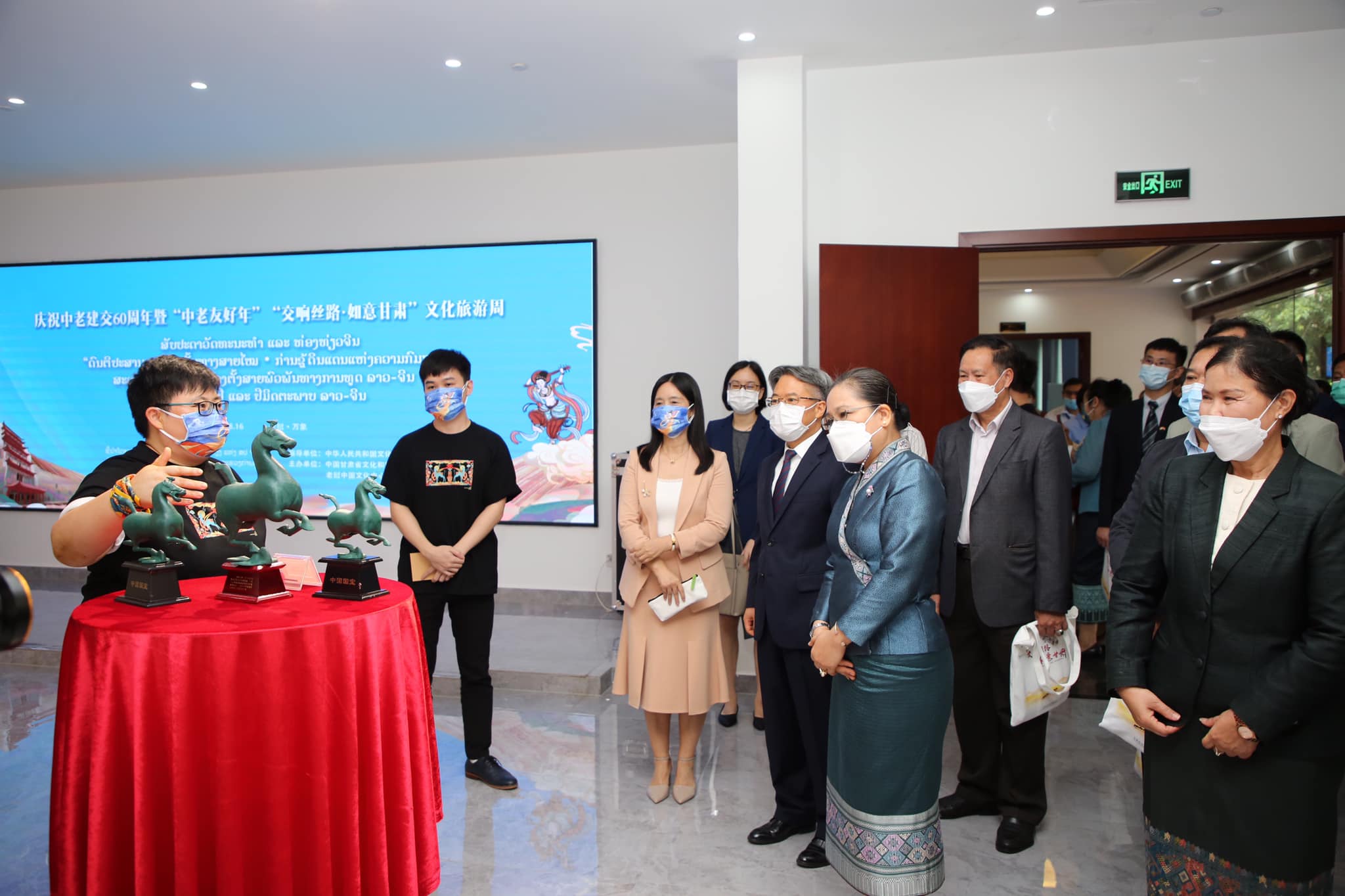 ເພື່ອສະເຫຼີມສະຫຼອງການສ້າງຕັ້ງສາຍພົວພັນທາງການທູດ ລາວ-ຈີນ ຄົບຮອບ 60 ປີ ແລະປີມິດຕະພາບລາວ-ຈີນ, ພາຍໃຕ້ການຊີ້ນຳຂອງກະຊວງວັດທະນະທຳ ແລະທ່ອງທ່ຽວ ສປ ຈີນ, ສູນວັດທະນະທໍາຈີນ ປະຈໍາລາວ ຮ່ວມກັບພະແນກວັດທະນະທໍາ ແລະ ທ່ອງທ່ຽວແຂວງກ່ານຊູ້ໄດ້ເປີດງານສັບປະດາວັດທະນະທໍາ ແລະທ່ອງທ່ຽວຈີນ “ດົນຕີປະສານສຽງບົນເສັ້ນທາງສາຍໄໝ-ກ່ານຊູ້ດິນແດນແຫ່ງຄວາມກົມກຽວ” ຂຶ້ນໃນວັນທີ 16 ສິງຫານີ້, ທີ່ສູນວັດທະນະທໍາຈີນປະຈໍາລາວໂດຍການໃຫ້ກຽດເຂົ້າຮ່ວມຕັດແຖບຜ້າເປີດງານຂອງ ທ່ານ ນາງ ສວນສະຫວັນ ວິຍະເກດ ລັດຖະມົນຕີກະຊວງຖະແຫຼງຂ່າວ, ວັດທະນະທໍາ ແລະທ່ອງທ່ຽວ (ຖວທ), ທ່ານ ຈ່ຽງຈ່າຍ ຕົ່ງ ເອກ ອັກຄະລັດຖະທູດຈີນປະຈໍາລາວພ້ອມດ້ວຍແຂກຖືກເຊີນເຂົ້າຮ່ວມ.