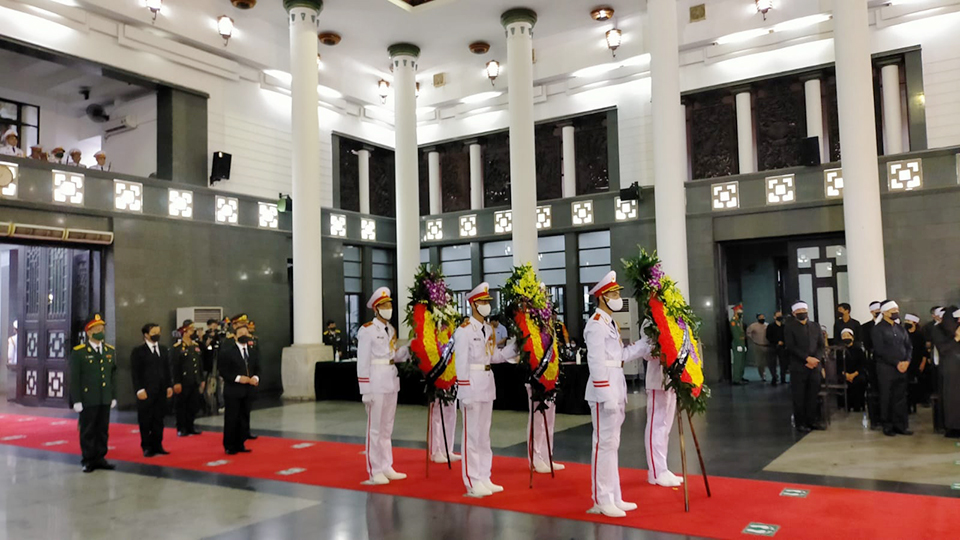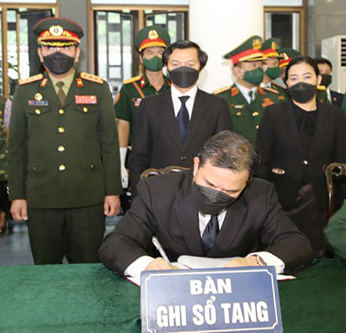 ຕອນເຊົ້າວັນທີ 15 ກັນຍາ 2021 ນີ້, ສະຫາຍ ແສງເພັດ ຮຸ່ງບຸນຍວງ ເອກອັກຄະລັດຖະທູດ ວິສາມັນ ຜູ້ມີອຳນາດເຕັມ ແຫ່ງ ສປປ ລາວ ປະຈຳ ສສ ຫວຽດນາມ ພ້ອມດ້ວຍຄະນະໄດ້ຕາງໜ້າຄະນະບໍລິຫານງານສູນກາງພັກປະຊາຊົນ ປະຕິວັດລາວ, ກະຊວງປ້ອງກັນປະເທດແຫ່ງ ສປປ ລາວ ແລະ ສະຖານເອກອັກຄະລັດຖະທູດ ແຫ່ງ ສປປ ລາວ ປະຈໍາ ສສ ຫວຽດນາມ ເຂົ້າວາງພວງມາລາ ແລະ ເຊັນປື້ມເພື່ອອາໄລຮັກເຖິງດວງວິນຍານຂອງ ສະຫາຍ ພົນເອກ ຟຸ່ງ ກວາງ ແທງ ອະດີດກຳມະການສູນກາງພັກກອມມູນິດຫວຽດນາມ ສະໄໝທີ IX, X, XI; ອະດີດກຳມະການກົມການເມືອງສູນກາງພັກກອມມູນິດຫວຽດນາມ ສະໄໝທີ X, XI, ອະດີດສະມາຊິກສະພາແຫ່ງຊາດ ສະໄໝທີ XI, XII, XIII, ອະດີດຮອງເລຂາຄະນະພັກການທະຫານສູນກາງ, ອະດີດລັດຖະມົນຕີກະຊວງປ້ອງກັນປະເທດ ຫວຽດນາມ ແຕ່ປີ 2006-2016.
