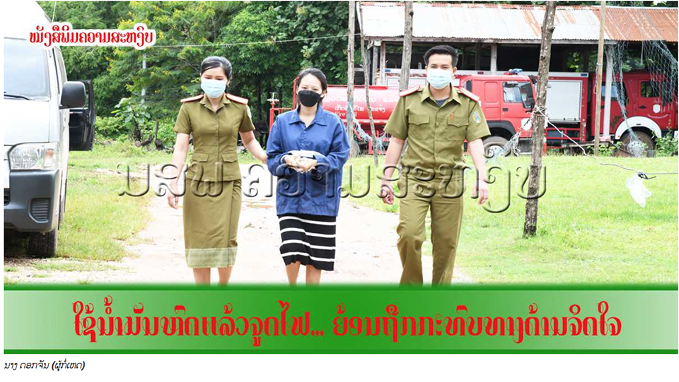 ຕໍ່ກັບບັນຫາດັ່ງກ່າວ, ພັທ ສິງຄໍາ ລໍວັນໄຊ ຮັກສາການຫົວໜ້າກອງບັນຊາການ ປກສ ເມືອງປາກງື່ມ ໄດ້ເປີດເຜີຍຕໍ່ນັກຂ່າວໜັງສືພິມຄວາມສະຫງົບໃນວັນທີ 15 ກັນຍາ 2021 ວ່າ: ກ່ຽວກັບເຫດການການເອົານໍ້າມັນສາດໃສ່ຮ່າງກາຍແລ້ວເອົາໄຟຈູດເຮັດໃຫ້ມີຄົນໄດ້ຮັບບາດເຈັບສາຫັດ 1 ຄົນ ແລະບາດເຈັບສົມຄວນ 1 ຄົນ; ເຊິ່ງເກີດຂຶ້ນໃນວັນທີ 8 ກັນຍາ, ເວລາປະມານ 14:00 ໂມງ, ຜູ້ກໍ່ເຫດຊື່ນາງ ດອກຈັນ ອາຍຸ 19 ປີ ບ້ານຖິ່ນທ່ຽງ.