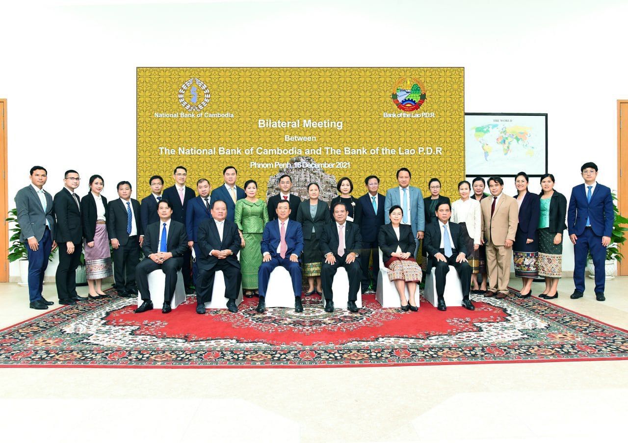 ກອງປະຊຸມທະວິພາຄີ ລະຫວ່າງ ທະນາຄານແຫ່ງ ສປປ ລາວ (ທຫລ) ແລະທະນາຄານແຫ່ງຊາດກໍາປູເຈຍ (ທປຈ) ປະຈໍາປີ 2021 ໄດ້ຈັດຂຶ້ນເມື່ອວັນທີ 16 ທັນວາ 2021 ທີ່ນະຄອນພະນົມເປັນ ຣາຊະອານາຈັກກໍາປູເຈຍ ໂດຍການເປັນເຈົ້າພາບຂອງທະນາຄານແຫ່ງຊາດກໍາປູເຈຍ ຊຶ່ງຝ່າຍຄະນະຜູ້ແທນຈາກທະນາຄານແຫ່ງ ສປປ ລາວ ນໍາໂດຍທ່ານ ສອນໄຊ ສິດພະໄຊ ຜູ້ວ່າການທະນາຄານແຫ່ງ ສປປ ລາວ ແລະຝ່າຍຄະນະຜູ້ແທນຈາກທະນາຄານແຫ່ງຊາດກໍາປູເຈຍນໍາໂດຍ ທ່ານ ເຈຍ ຈັນໂຕ ຜູ້ວ່າການທະນາຄານແຫ່ງຊາດກໍາປູເຈຍພ້ອມດ້ວຍຄະນະນໍາທັງສອງຝ່າຍຈາກສອງທະນາຄານກາງເຂົ້າຮ່ວມ.