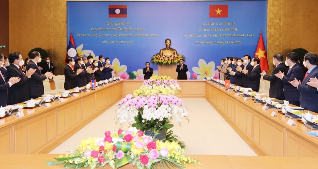 ໃນຕອນເຊົ້າຂອງວັນທີ 10 ມັງກອນ 2022 ທີ່ຫ້ອງປະຊຸມຫ້ອງການລັດຖະບານ ສສ ຫວຽດນາມ ສະຫາຍ ພັນຄຳ ວິພາວັນ ນາຍົກລັດຖະມົນຕີ ແຫ່ງ ສປປ ລາວ ແລະ ສະຫາຍ ຟ້າມ ມິງ ຈິງ ນາຍົກລັດຖະມົນຕີ ແຫ່ງ ສສ ຫວຽດນາມ ໄດ້ເປັນປະທານຮ່ວມຊີ້ນຳກອງປະຊຸມ ຄັ້ງທີ 44 ຂອງຄະນະກໍາມະການຮ່ວມມືທະວິພາຄີ ລະຫວ່າງລັດຖະບານ ແຫ່ງ ສປປ ລາວ ແລະລັດຖະບານ ແຫ່ງ ສ.ສ ຫວຽດນາມ ປະຈໍາປີ 2022 ຊຶ່ງສອງຝ່າຍໄດ້ຮ່ວມກັນຕີລາຄາຜົນຂອງການຈັດຕັ້ງປະຕິບັດບົດບັນທຶກກອງປະຊຸມ ຄັ້ງທີ 43 ກໍຄືຂໍ້ຕົກລົງວ່າດ້ວຍການຮ່ວມມື ປະຈໍາປີ 2021 ແລະ ພ້ອມກັນປຶກສາຫາລືທິດທາງແຜນການຮ່ວມມື ໃນປີ 2022.