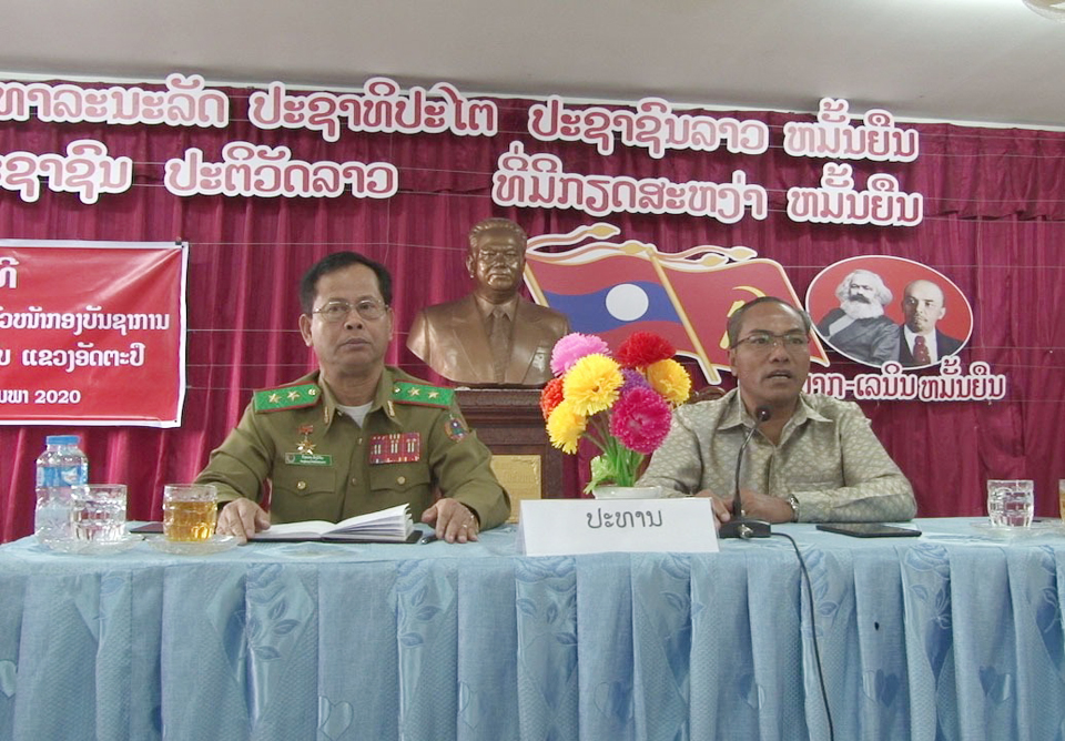 ພິທີປະກາດແຕ່ງຕັ້ງຫົວໜ້າກອງບັນຊາການ ປກສ ແຂວງອັດຕະປື ໄດ້ຈັດຂຶ້ນໃນວັນທີ 6 ກຸມພາ 2020 ທີ່ສະໂມສອນຂອງກອງບັນຊາການ ປກສ ແຂວງໂດຍເປັນປະທານຂອງ ທ່ານ ພົຕ ກົງທອງ ພົງວິຈິດ ຮອງລັດຖະມົນຕີກະຊວງປ້ອງກັນຄວາມສະຫງົບ,