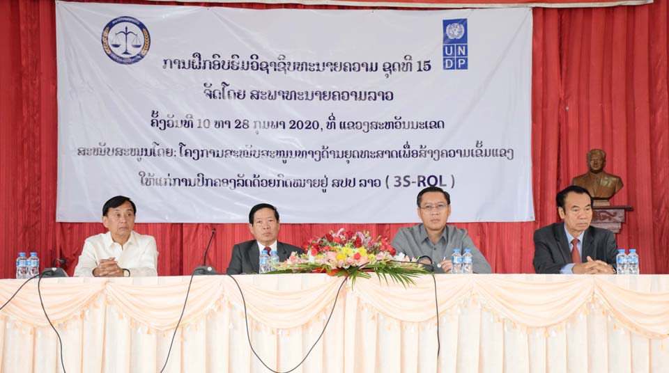 ສະພາທະນາຍຄວາມລາວໄດ້ຈັດຊຸດຝຶກອົບຮົມວິຊາຊີບທະນາຍຄວາມຊຸດທີ 15 ຂຶ້ນໃນລະຫວ່າງວັນທີ 10-28 ກຸມພາ 2020 ທີ່ສະຖາບັນຍຸຕິທຳພາກກາງ ແຂວງສະຫວັນນະເຂດພາຍໃຕ້ການສະໜັບສະໜູນໂດຍໂຄງການສະໜັບສະໜູນທາງດ້ານຍຸດທະສາດເພື່ອສ້າງຄວາມເຂັ້ມແຂງໃຫ້ແກ່ການ