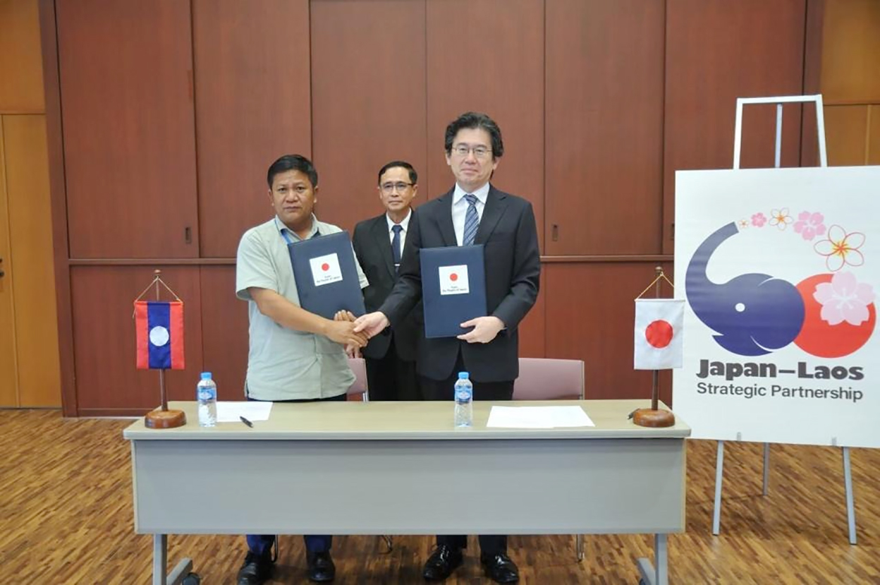 ພິທີເຊັນສັນຍາໂຄງການກໍ່ສ້າງອາຄານຮຽນໂຮງຮຽນມັດທະຍົມຕອນຕົ້ນມົກໂຊ ແຂວງບໍ່ແກ້ວ ຈັດຂຶ້ນວັນທີ 25 ກັນຍາ 2023 ທີ່ສະຖານທູດຍີ່ປຸ່ນ ປະຈຳ ສປປ ລາວ