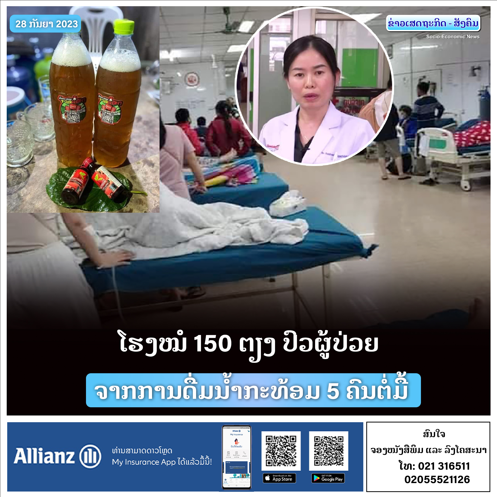 ທ່ານ ນາງ ອຸໄລວັນ ພອນສະຫວັນ ຮອງຫົວໜ້າພະແນກສຸກເສີນໂຮງໝໍມິດຕະພາບໄດ້ເປີດເຜີຍເມື່ອບໍ່ດົນມານີ້ວ່າ: ປະຈຸບັນເຫັນໄດ້ວ່າມີຜູ້ປ່ວຍທີ່ມີສາເຫດມາຈາກການດື່ມນໍ້າກະທ້ອມເຂົ້າມາປິ່ນປົວຢູ່ສະເພາະໂຮງໝໍມິດຕະພາບ ໃນມື້ໜຶ່ງສະເລ່ຍປະມານ 5 ຄົນ/ມື້,