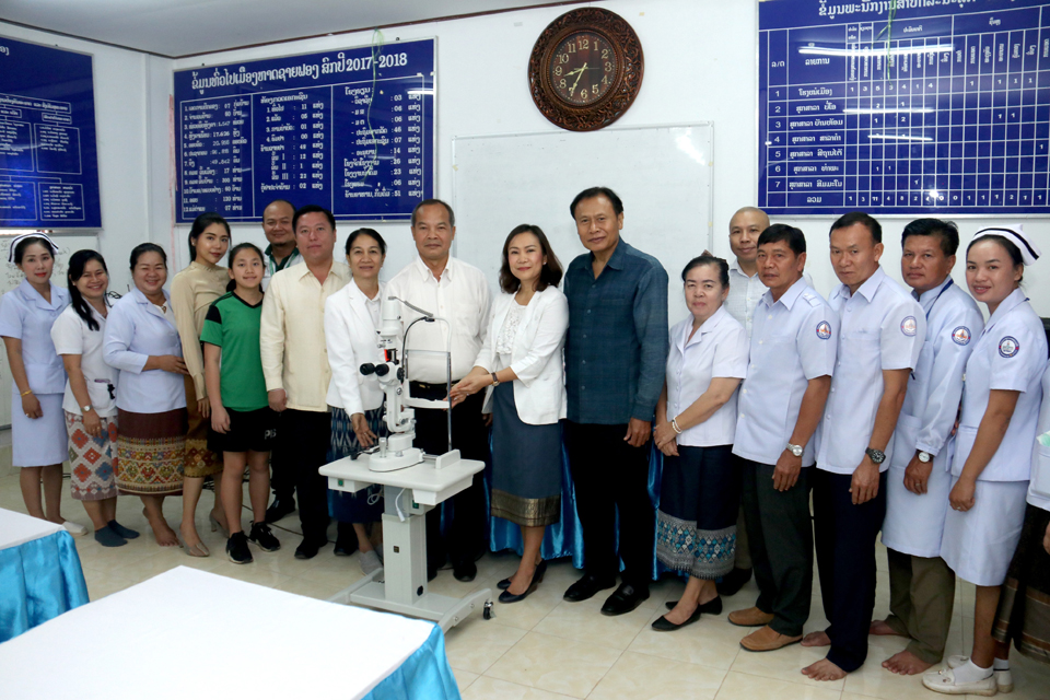 ໂຮງຮຽນນາໆຊາດປັນຍາ ທິບໄດ້ມອບອຸປະກອນກ້ອງສ່ອງ ກວດຕາໃຫ້ໂຮງໝໍເມືອງຫາດຊາຍຟອງ ນະຄອນຫຼວງວຽງຈັນ ເພື່ອໃຫ້ປະຊາຊົນໄດ້ເຂົ້າເຖິງການບໍລິການດ້ານສຸຂະພາບໃຫ້ຫຼາຍຂຶ້ນ ແລະເປັນການຮັບໃຊ້ວຽກງານ ການປິ່ນປົວຄົນເຈັບໄດ້ດີຂຶ້ນອີກ ດ້ວຍ.