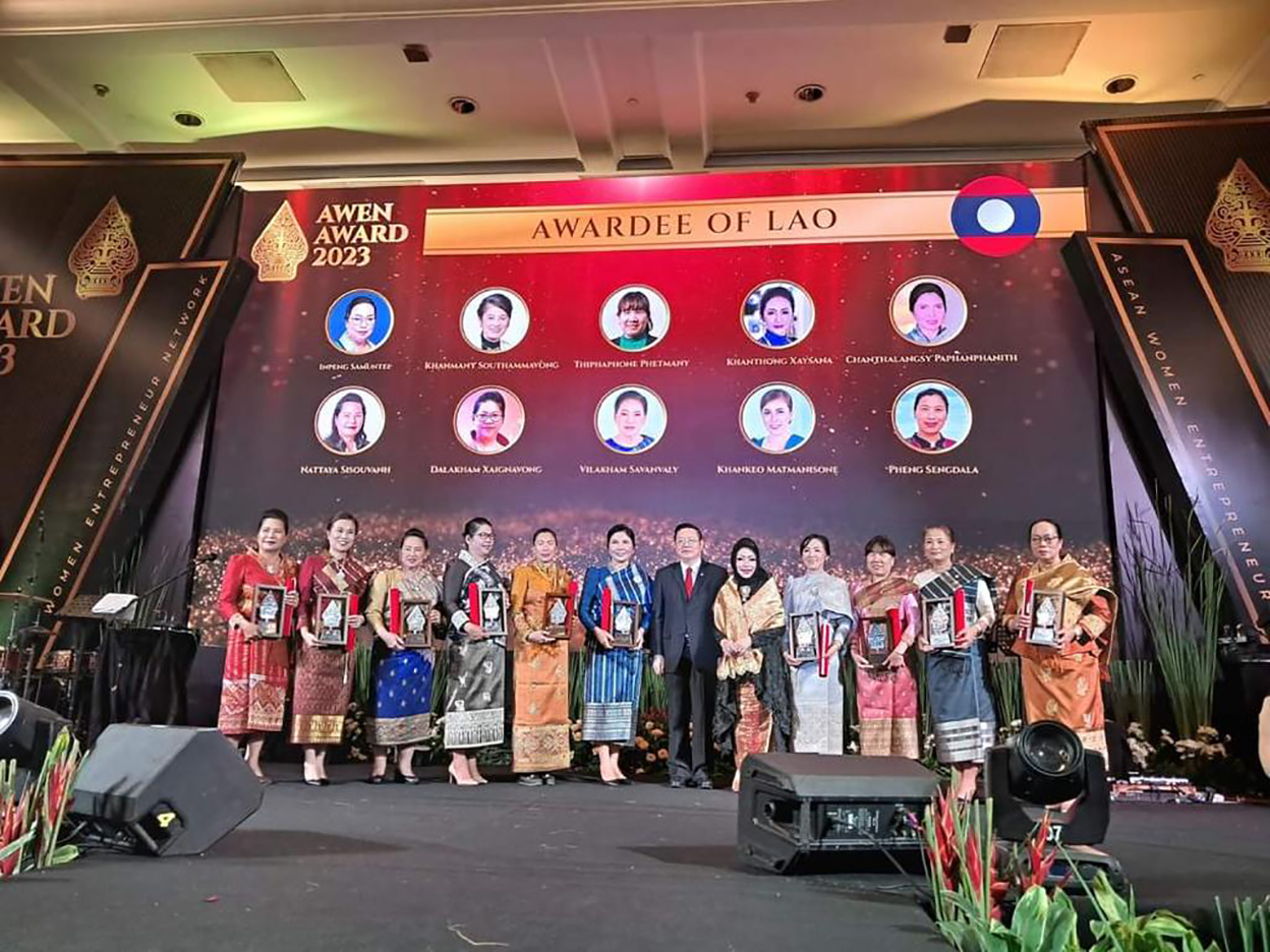 ສະມາຊິກສະມາຄົມນັກທຸລະກິດແມ່ຍິງ (ສທຍ) ໄດ້ຮັບລາງວັນຜູ້ປະກອບກອບການແມ່ຍິງດີເດັ່ນອາຊຽນ ປະຈຳປີ 2023