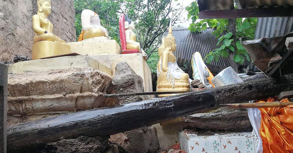 ໃນຄໍ່າຄືນຂອງວັນທີ 24 ກໍລະກົດ 2021 ອາຣາມເກົ່າ (ສິມເກົ່າ) ຢູ່ທີ່ວັດບ້ານພະນອນໄຕ້ເມືອງຈຳປາສັກ, ແຂວງຈຳປາສັກ ໄດ້ຊຸດລົງ ແລະເພພັງລົງເຮັດໃຫ້ພຣະພຸດທະຮູບທີ່ເກົ່າແກ່ ແລະເຄື່ອງໃຊ້ຂອງສອຍອື່ນໆໄດ້ຮັບຄວາມເສຍຫາຍ.