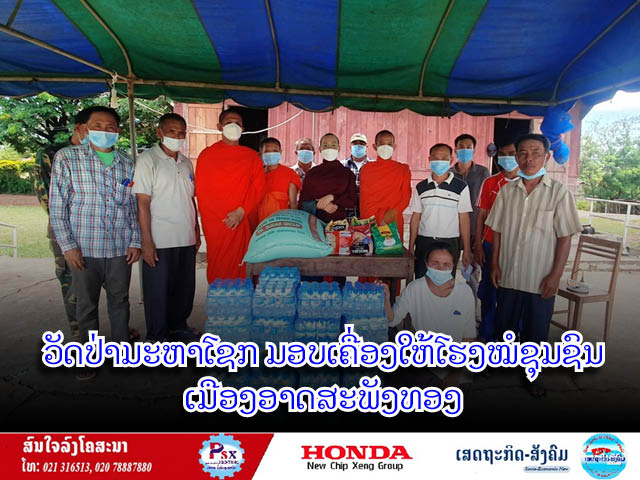 ໃນວັນທີ 27 ກັນຍາ 2021, ພຣະອາຈານ ປທ ໂທນ ວຽງບຸດດີ ຫົວໜ້າຫ້ອງການປົກຄອງສົງ ແລະພຣະອາຈານ ໂງ່ນຄຳ ພວງສະຫວັນວັດປ່າມະຫາໂຊກ ເມືອງອາດສະພັງທອງ ແຂວງສະຫວັນນະເຂດພ້ອມດ້ວຍອກຕົນຍາດໂຍມທີ່ມີນໍ້າໃຈສັດທາໄດ້ປະກອບສ່ວນເຄື່ອງອຸປະໂພກ-ບໍລິໂພກໃຫ້ໂຮງໝໍຊຸມຊົນ ແລະສູນກັກໂຕ 3 ຈຸດ ພາຍໃນເມືອງອາດສະພັງທອງ.