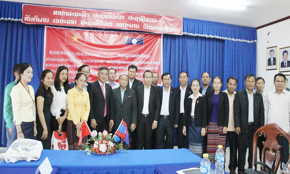 ກອງປະຊຸມແລກປ່ຽນບົດຮຽນດ້ານວຽກງານວັດທະນະທຳ, ທ່ອງທ່ຽວ ແລະກີລາລະຫວ່າງຄະນະນໍາພະແນກຖະແຫຼ່ງຂ່າວ, ວັດທະນະທຳ ແລະທ່ອງທ່ຽວ (ຖວທ) ແຂວງເຊກອງ ສປປ ລາວ ກັບຄະນະນໍາພະແນກວັດທະນະທຳ-ກີລາ ແລະທ່ອງທ່ຽວແຂວງກວາງນາມ ສສ ຫວຽດນາມ