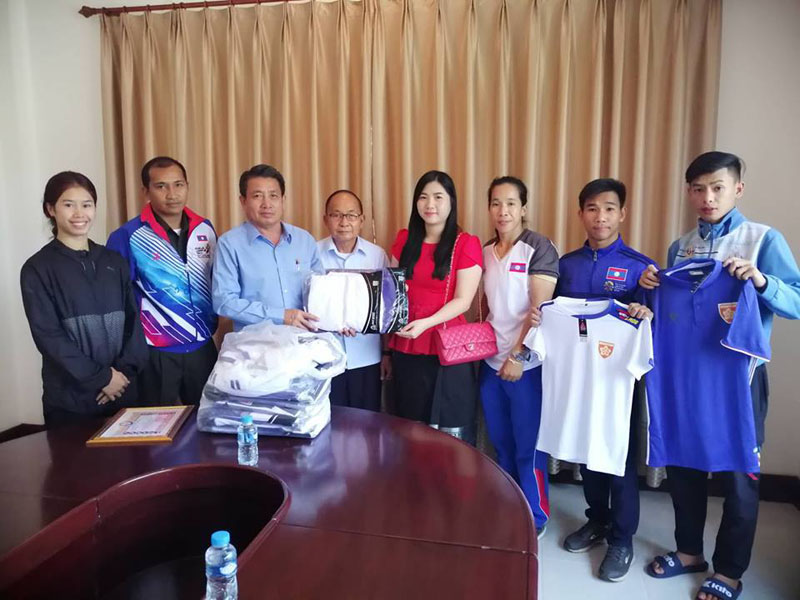 ບໍລິສັດເມດິທອບ ການຢາ ກອງທັບໃຫ້ການຊຸກຍູ້ເຄື່ອງກີລາຊຶ່ງເປັນຊຸດວອມ 7 ຊຸດ ແລະເຄື່ອງ ນຸ່ງຝຶກຊ້ອມກີລາ 7 ຊຸດ ລວມມູນຄ່າ 4 ລ້ານກວ່າກີບ ໃຫ້ແກ່ທັບນັກກີລາຊົກມວຍສາກົນທີມຊາດລາວ, ຄະນະນຳ 2 ທ່ານ, ຄູຝຶກ 1 ທ່ານ ແລະນັກກີລາ 4 ຄົນ, ຍິງ 2 ຄົນ ກຽມ