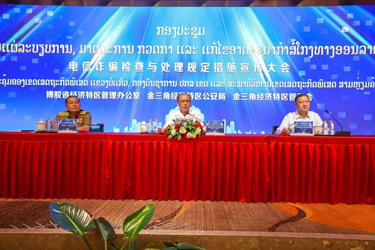 ເມື່ອບໍ່ດົນຜ່ານມານີ້,ຄະນະຄຸ້ມຄອງເຂດເສດຖະກິດພິເສດແຂວງບໍ່ແກ້ວ ຮ່ວມກັບ ກອງບັນຊາການ ປກສ ເຂດ ແລະສະພາບໍລິຫານເຂດເສດຖະກິດພິເສດສາມຫຼ່ຽມຄຳ, ໄດ້ຈັດຕັ້ງການເຜີຍແຜ່ລະບຽບການ, ການຕິດຕາມ, ກວດກາ ແລະປາບປາມອາຊະຍາກຳສໍ້ໂກງທາງອອນລາຍຂຶ້ນ.