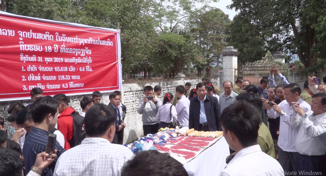 ເນື່ອງໃນໂອກາດສະເຫຼີມສະຫຼອງວັນແຫ່ງຊາດຕ້ານຢາເສບຕິດ ຄົບຮອບ 18 ປີຄື ວັນທີ 12 ຕຸລາ 2001 ຫາ 12 ຕຸລາ 2019, ມາ ໃນວັນທີ 31 ຕຸລາຜ່ານມານີ້ ຢູ່ທີ່ສະໂມສອນຫ້ອງວ່າການປົກຄອງ ແຂວງວຽງຈັນ ໄດ້ຈັດພິທີຈູດທຳລາຍຢາເສບຕິດຂຶ້ນໂດຍພາຍໃຕ້ການເປັນປະທານ