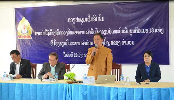 ກອງປະຊຸມຝຶກອົບຮົມຍົກລະດັບການນຳໃຊ້ເຄື່ອງທົດລອງວິທະຍາສາດສຳລັບໂຮງຮຽນມັດທະຍົມສົມບູນຕົວແບບຈັດຂຶ້ນໃນລະຫວ່າງວັນທີ 28 ມັງກອນຫາ 1 ກຸມພາ 2019 ທີ່ໂຮງຮຽນມິດຕະພາບຄຳມ່ວນ-ກວາງບິ່ງແຂວງ