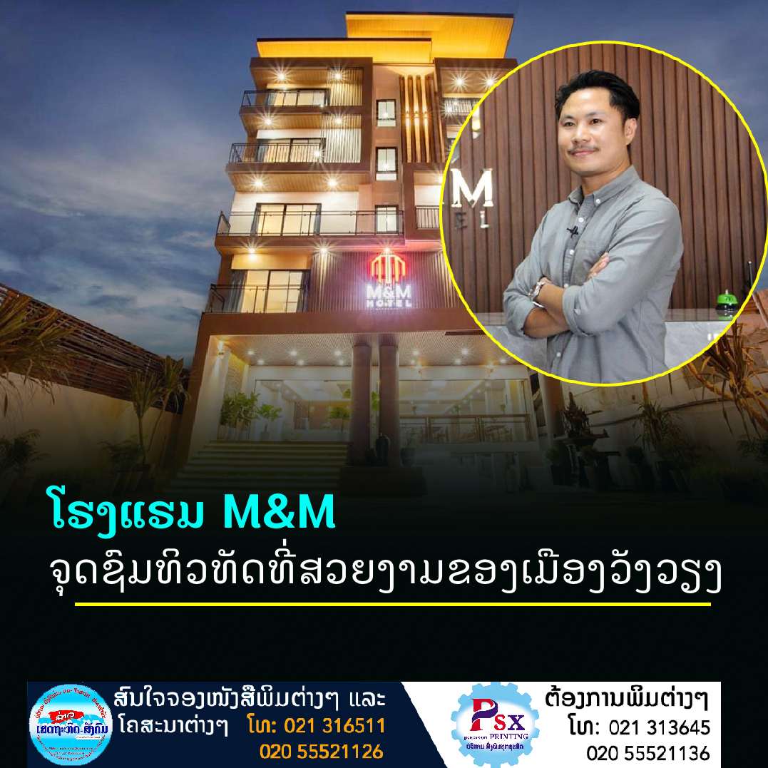 ໂຮງແຮມ M&M ເປັນອີກໜຶ່ງສະຖານທີ່ພັກທີ່ເພິ່ນອອກແບບຕົບແຕ່ງຖືວ່າສວຍງານລູຫຼາລາຄ່າກັນເອງ ທີ່ສຳຄັນຢູ່ໃຈກາງ ເມືອງວັງວຽງ ເປັນໂຮງແຮມ 5 ຊັ້ນມີຊັ້ນດາດຟ້າ ເປັນຈຸດຊົມທິວທັດ ແບບ 360 ອົງສາ ພ້ອມນີ້ຍັງມີບໍລິການອາຫານ ແລະ ເຄື່ອງດື່ມ
