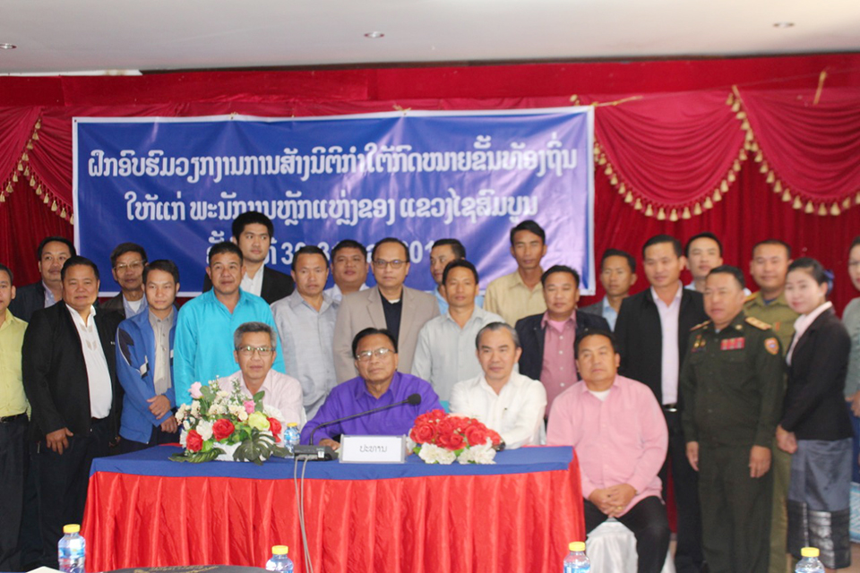ກະຊວງຍຸຕິທໍາຮ່ວມກັບພະແນກຍຸທໍາ ແຂວງໄຊສົມບູນ ຈັດພິທີເປີດຊຸດຝຶກອົບຮົມວຽກງານການສ້າງນິຕິກໍາໃຕ້ກົດໝາຍຂັ້ນທ້ອງຖິ່ນໃຫ້ແກ່ພະນັກງານຫຼັກແຫຼ່ງຂອງແຂວງໃນລະຫວ່າງວັນທີ 30-31 ຕຸລາ 2019 ທີ່ຫ້ອງປະຊຸມພະແນກຖະແຫຼງຂ່າວ,