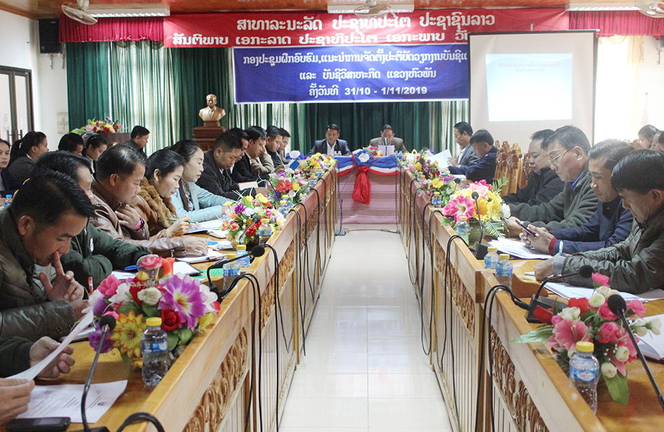 ວັນທີ 31 ຕຸລາ 2019 ນີ້, ກະຊວງການເງິນສົມທົບກັບແຂວງຫົວພັນຈັດຝຶກອົບຮົມ, ແນະນຳການຈັດຕັ້ງປະຕິບັດວຽກງານບັນຊີແຫ່ງລັດ ແລະ ບັນຊີວິສາຫະກິດຂຶ້ນຢູ່ທີ່ຫໍວັດທະນະທຳແຂວງໂດຍການເຂົ້າຮ່ວມເປັນປະທານຂອງ ທ່ານ ວັນແສງ ຄຳມັງໄຊ ຫົວໜ້າພະແນກການເງິນແຂວງ,