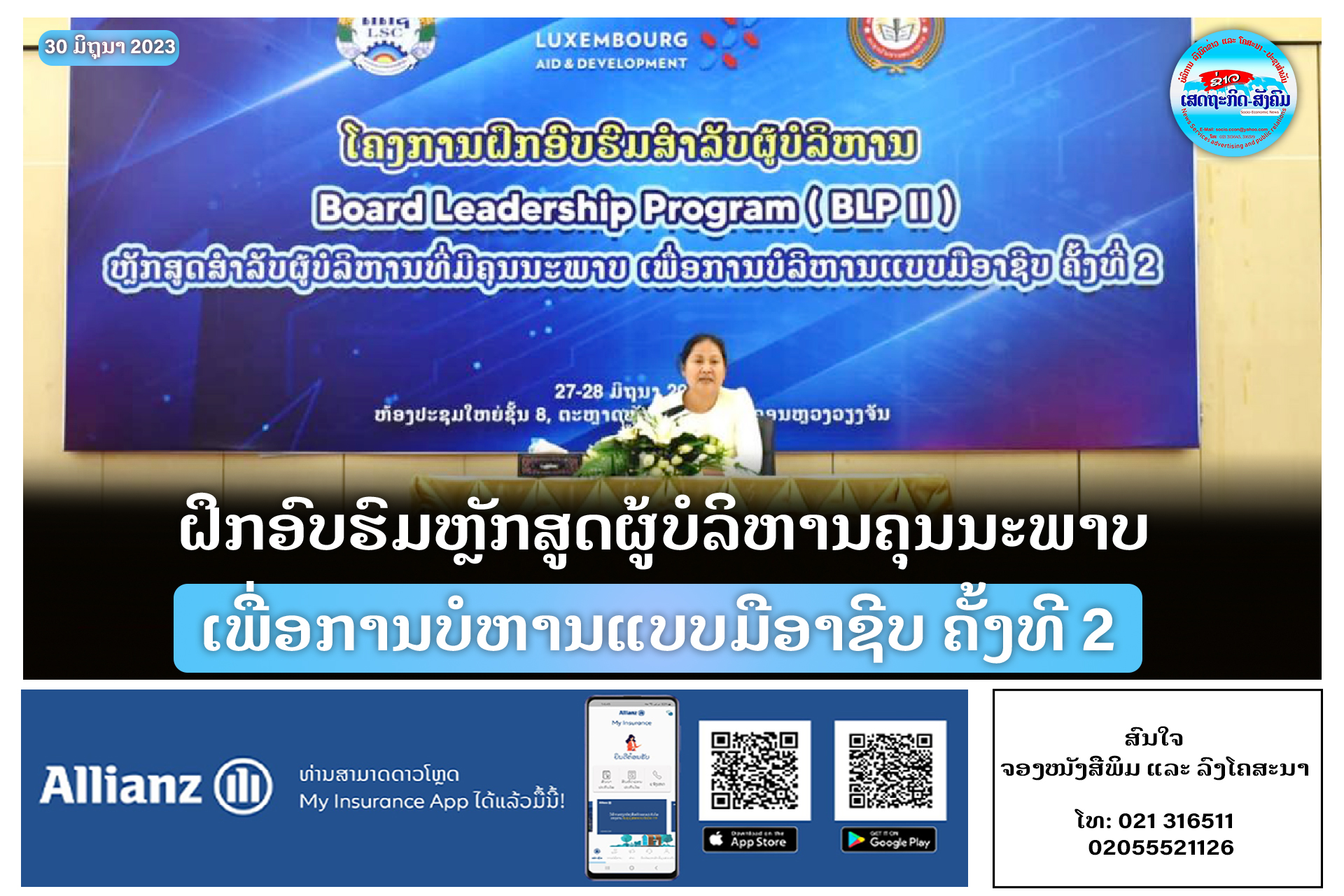 ເພື່ອເປັນການເປີດໂອກາດໃຫ້ແກ່ສະມາຊິກສະພາບໍລິຫານ ແລະຜູ້ບໍລິຫານຂັ້ນສູງຂອງບໍລິສັດ ໃນ ສປປ ລາວ ໄດ້ມີໂອກາດຮຽນຮູ້