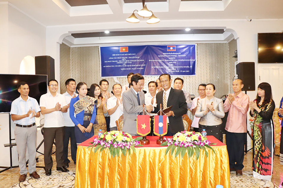 ໃນລະຫວ່າງວັນທີ 16 –17 ຕຸລາ 2019 ຄະນະຜູ້ແທນສະຖານີວິທະຍຸກະຈາຍສຽງ-ໂທລະພາບ ແຂວງກວາງບິ່ງ ສສ ຫວຽດນາມ ພ້ອມຄະນະໄດ້ເດີນທາງມາຢ້ຽມຢາມ ແລະເຮັດວຽກຢູ່ແຂວງຄຳ ມ່ວນໃຫ້ການຕ້ອນຮັບດ້ວຍຄວາມ ຮັກແພງບົນຈິດໃຈຄວາມສາມັກຄີ,