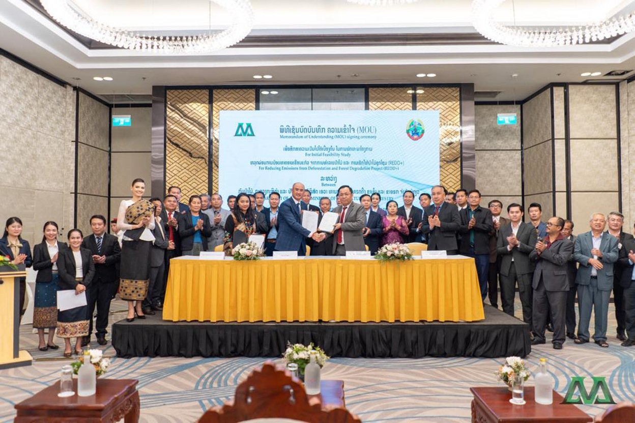 ພິທີເຊັນບົດບັນ ທຶກຄວາມເຂົ້າໃຈ ເພື່ອສຶກສາຄວາມເປັນໄປໄດ້ເບື້ອງຕົ້ນໃນການພັດທະນາໂຄງການຫຼຸດຜ່ອນການປ່ອຍອາຍພິດເຮືອນແກ້ວຈາກການທໍາລາຍປ່າໄມ້ ແລະ ເຮັດໃຫ້ປ່າໄມ້ຊຸດໂຊມ ລະຫວ່າງ ກົມປ່າໄມ້ ກະຊວງກະສິກຳ ແລະປ່າໄມ້ ກັບ ບໍລິສັດ ເອວາ ທານສະປອດ ເທຣດດີ້ງ ຂາເຂົ້າ-ຂາອອກ ຈຳກັດຜູ້ດຽວ