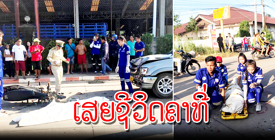 ລາຍງາຍຈາກຫນ່ວຍກູໄພພັດທະນາຜາສຸກໃນເວລາ 15:46 ນາທີ ໄດ້ເກີດອຸປະຕິເຫດ. ລົດໃຫຍ່ບວກລົດຈັກ, ເບື່ອງຕົ້ນແມ່ນເປັນເພດຍິງຊື່ ນາງ ຄຳພິວາ ບ້ານໂພນສີນວນ ອາຍຸ 37 ປີ ອາການມີບາດແຜທີ່ທ້ອງໃສ້ທະລຸ ແລະຫົວແຕກເສຍຊິວິດຄາທີ່ປະຈຸບັນໄດ້ນຳສົບຜູ້ກ່ຽວໄວ້ທີ່ວັດສາລາແດງ,