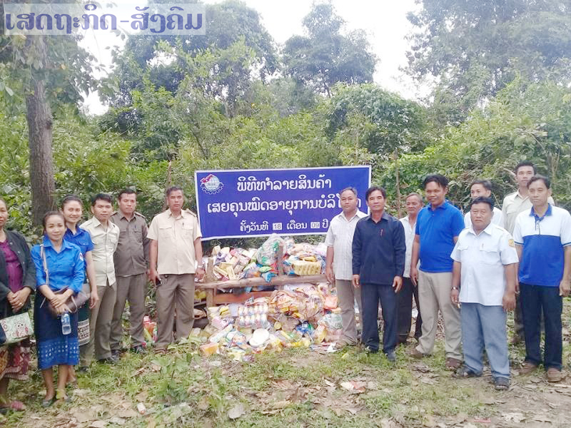 ເພື່ອເປັນການຕ້ານ ແລະ ສະກັດກັ້ນການຈຳໜ່າຍສິນຄ້າທີ່ໝົດອາຍຸໃນການໃຊ້ງານຂອງຜູ້ອຸປະໂພກ ແລະ ບໍລິໂພກໃນວັນທີ 18 ກັນຍາຜ່ານມາທີ່ກອງບັນຊາ ການ ປກສ ເມືອງໜອງບົກ ແຂວງຄຳມ່ວນ ໄດ້ຈັດພິທີທຳລາຍສິນຄ້າທີ່ໝົດອາຍຸ,