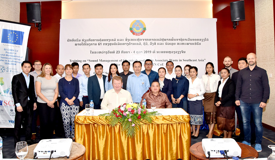 ກົມແຜນການ ແລະ ຮ່ວມມື, ກະຊວງວິທະຍາສາດ ແລະ ເຕັກໂນໂລຊີ (ກວຕ) ໃນນາມຈຸດປະສານງານແຫ່ງຊາດດ້ານເຄມີ, ຊີວະ, ລັງສີ ແລະ ນິວເຄຣຍ ຫຼືເອີ້ນວ່າ CBRN ໄດ້ຈັດຝຶກອົບຮົມໃນ ຫົວຂໍ້: ການຫຼຸດຜ່ອນຄວາມສ່ຽງ ທາງດ້ານເຄມີແລະສິ່ງເສດເຫຼືອ ທາງດ້ານເຄມີ ຂຶ້ນໃນລະຫວ່າງ ວັນທີ 23-28 ກັນຍາ 2019