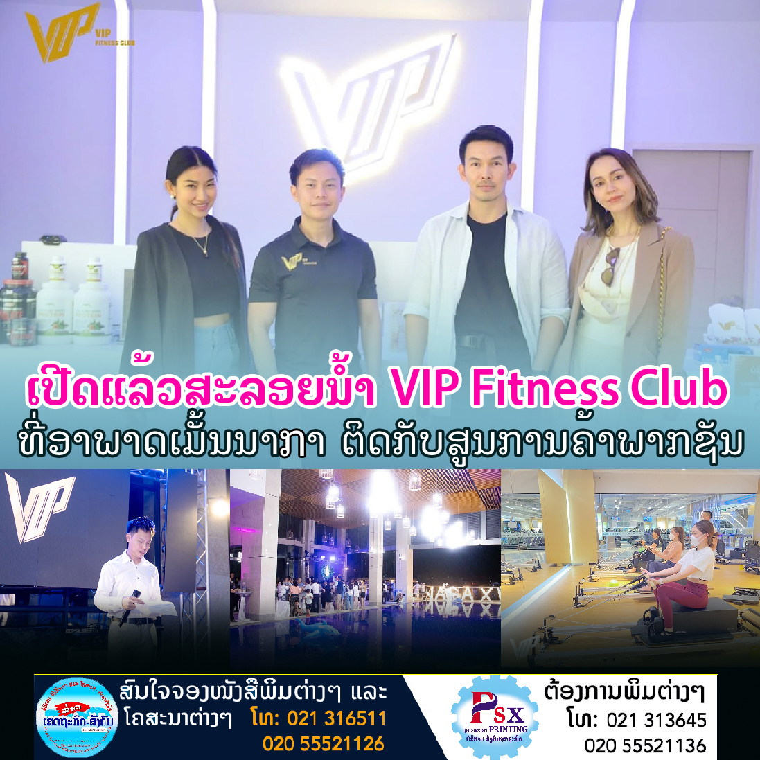 ເປີດຕົວຢ່າງເປັນທາງການສະລອຍນໍ້າຂອງ VIP Fitness Club ຮ່ວມກັບ Naga Apartment ຈັດຂຶ້ນໃນຕອນຄໍ່າຂອງວັນທີ 30 ກໍລະກົດ 2022 ຕັ້ງຢູ່ຊັ້ນ 4 Naga Apartment ຕິດກັບສູນການຄ້າພາກຊັນ, ນະຄອນຫຼວງວຽງຈັນ