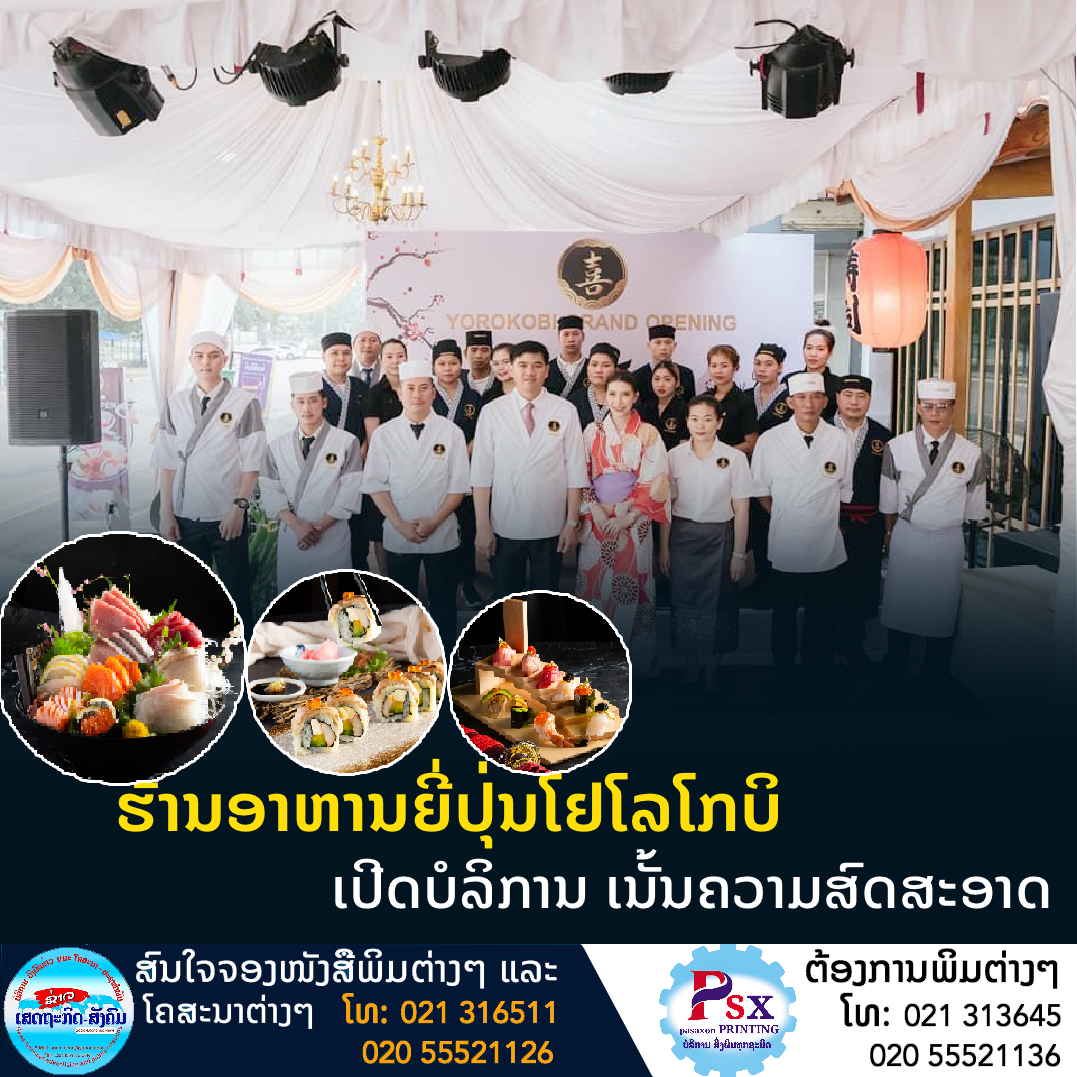 ຖືເປັນຂ່າວດີສຳລັບກຸ່ມຄົນທີ່ມັກຮັກການກິນໂດຍສະເພາະອາຫານຍີ່ປຸ່ນ ປະຈຸບັນຮ້ານອາຫານຍີ່ປຸ່ນໂຢໂລໂກບິ ເປີດບໍລິການຢູ່ລາວ ທີ່ມີລົດຊາດແບບດຽວຂອງປະເທດຍີ່ປຸ່ນ ທີ່ສຳຄັນເພິ່ນເນັ້ນຄວາມສົດ, ສະອາດມາດຖານເຮັດໃຫ້ເປີດບໍລິການພຽງເດືອນດຽວລູກຄ້າມາໃຊ້ບໍລິການດີສົມຄວນ.