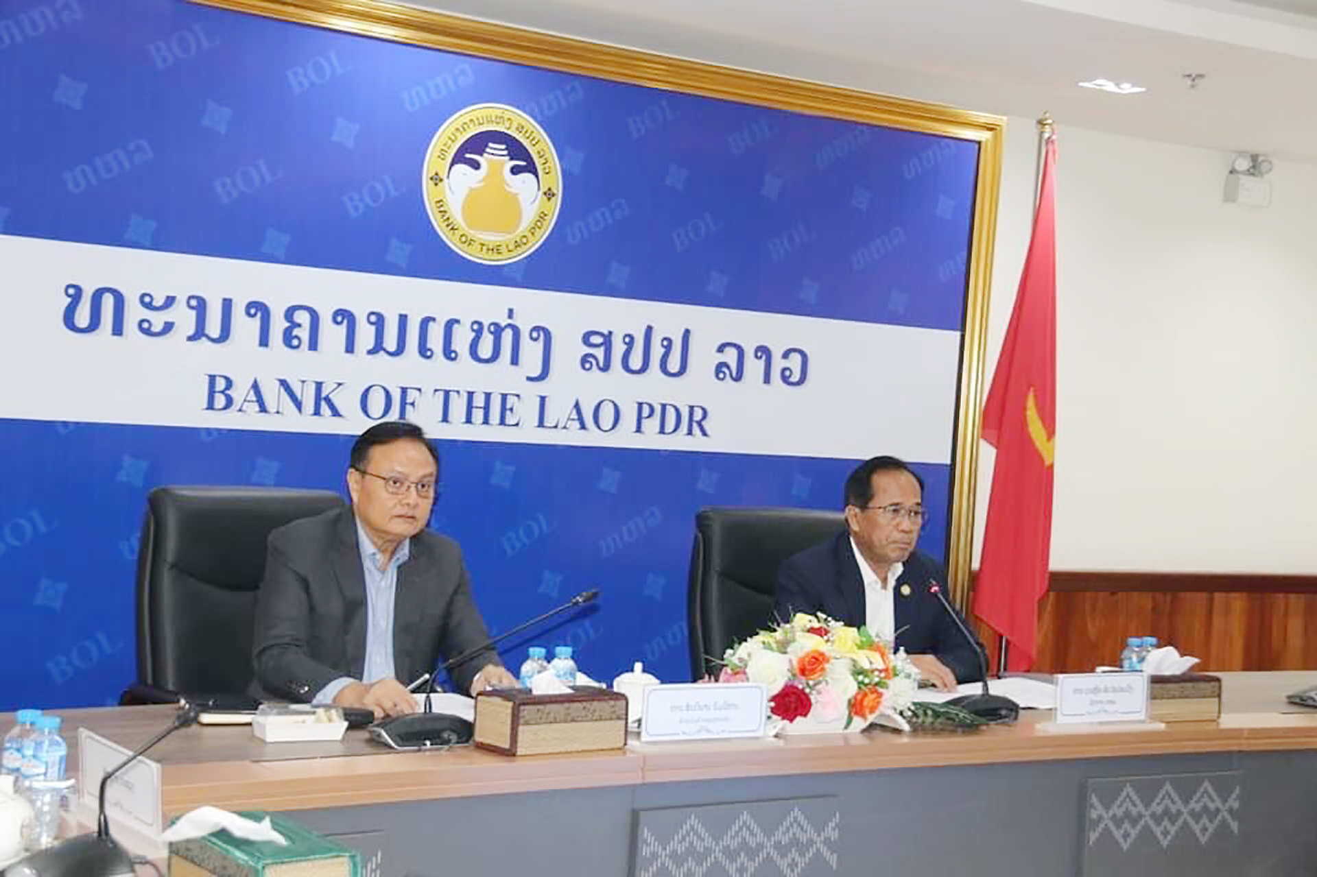 ທະນາຄານແຫ່ງ ສປປ ລາວ(ທຫລ) ແລະກະຊວງການເງິນ ໄດ້ຈັດກອງປະຊຸມຮ່ວມພົບປະປຶກສາຫາລື 2 ຝ່າຍ ຂຶ້ນໃນວັນທີ 22 ພຶດສະພານີ້ ໂດຍການເປັນປະທານຮ່ວມຂອງທ່ານ ບຸນເຫລືອ ສິນໄຊວໍຣະວົງ ຜູ້ວ່າການທະນາຄານແຫ່ງ ສປປ ລາວ ແລະທ່ານ ສັນຕິພາບ ພົມວິຫານ ລັດຖະມົນຕີກະຊວງການເງິນພ້ອມດ້ວຍຄະນະ.